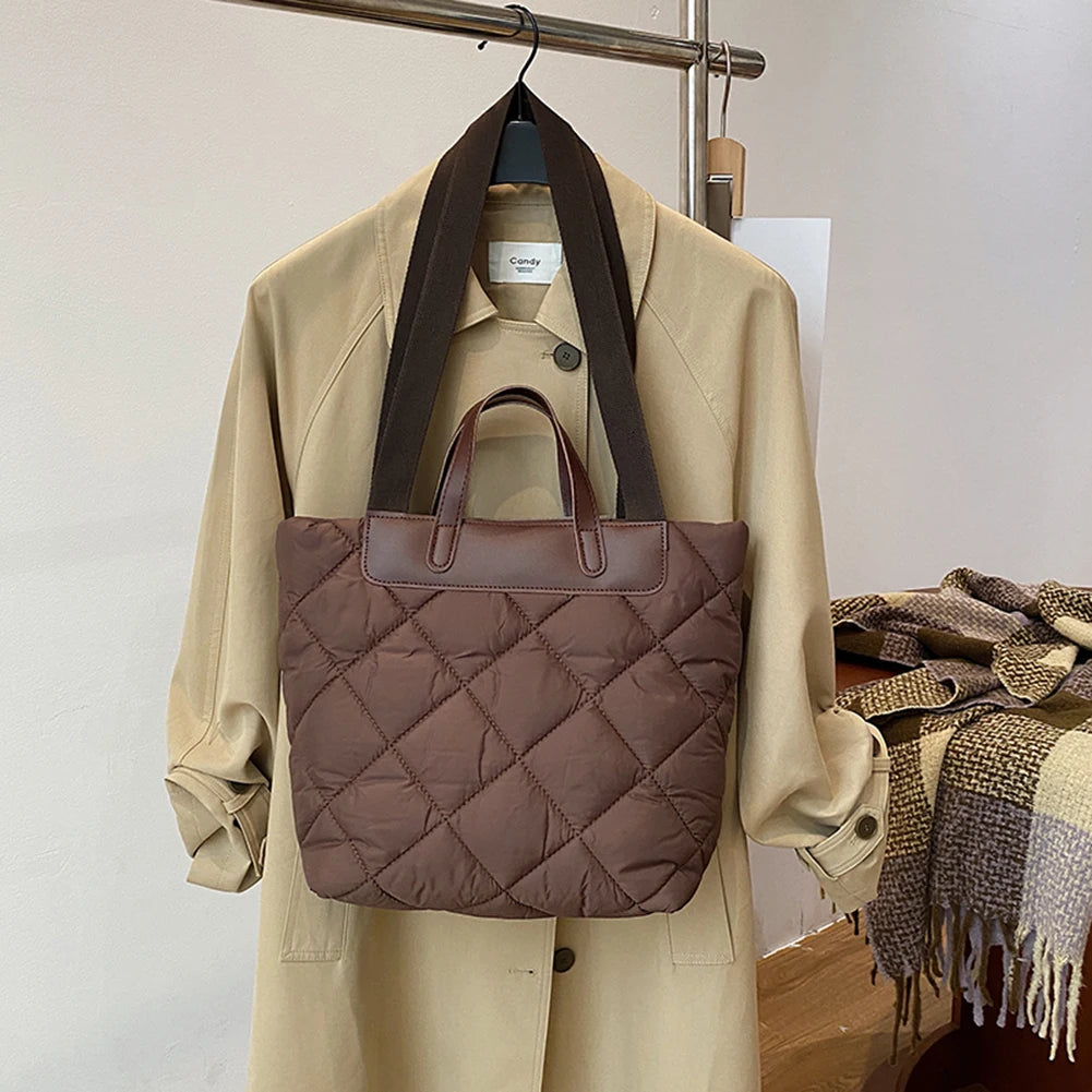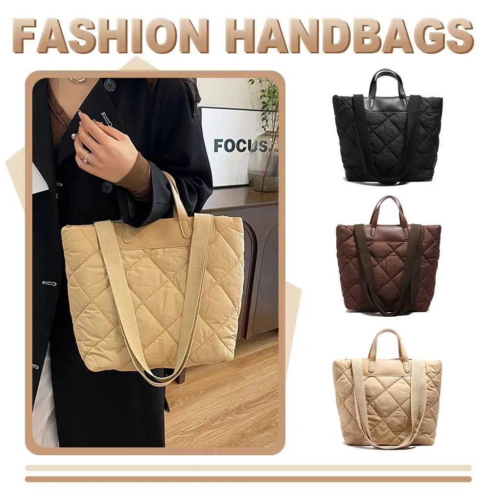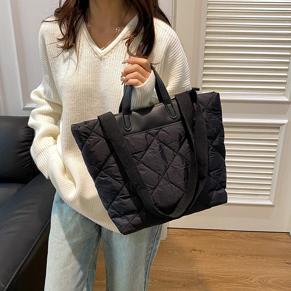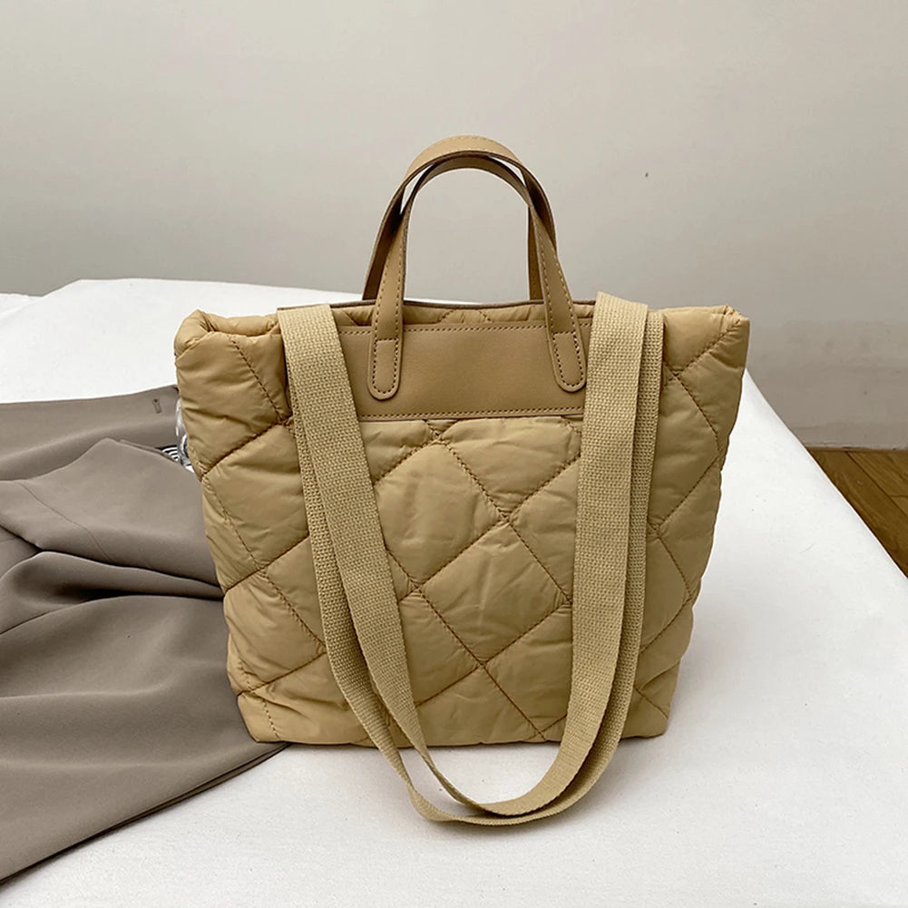 Quilted Puffer Tote Bag | Solid Color Large Purse Satchel Bag for Travel