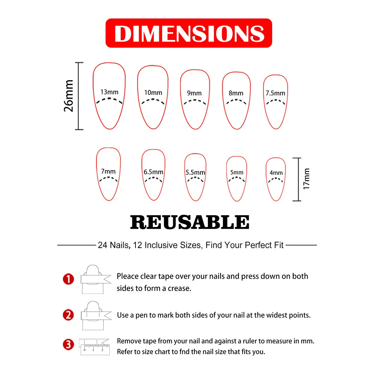 24 Red French Nails | Bow 3D Red Bowknot Design Almond False Nail | Press on Nails for Girls