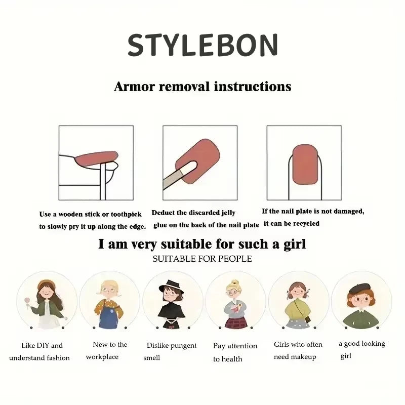 10Pcs nails + Accessories Kit (a piece of jelly glue + a small stick + a small rubbing strip + alcohol cotton pad)