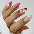 Flower Design Stick on Nail Art French Oval Fake Nail Finished Short Almond False Nails Datachable Press on Nails Tips