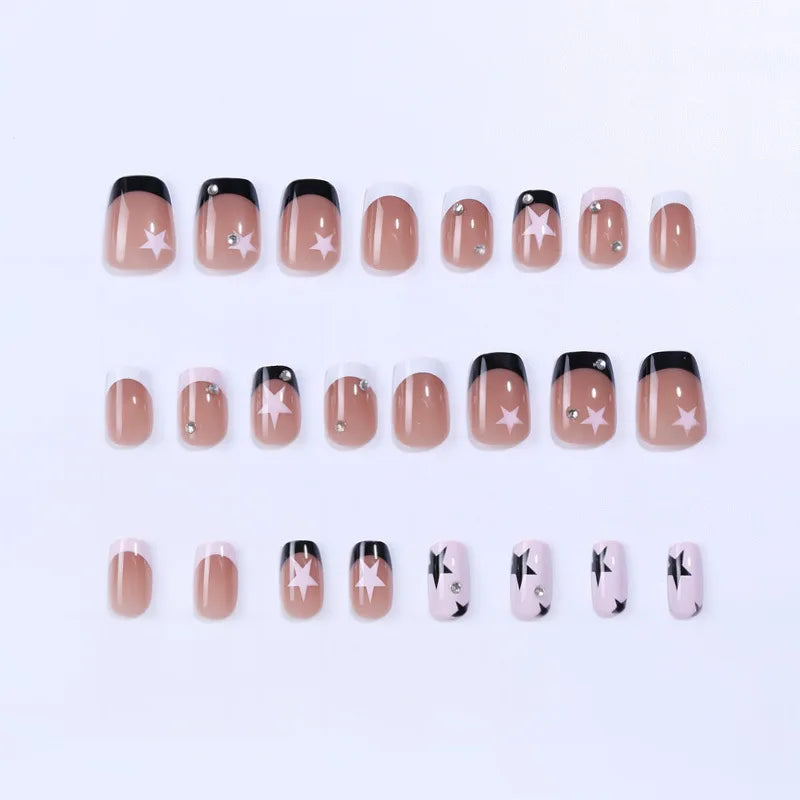 y2k Nails 24 School Nails Color | French Press Nail Tips with Five-pointed Star Pattern