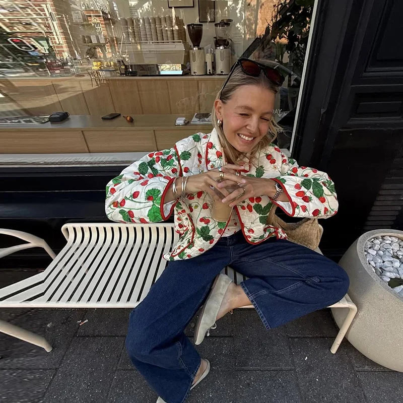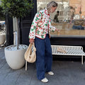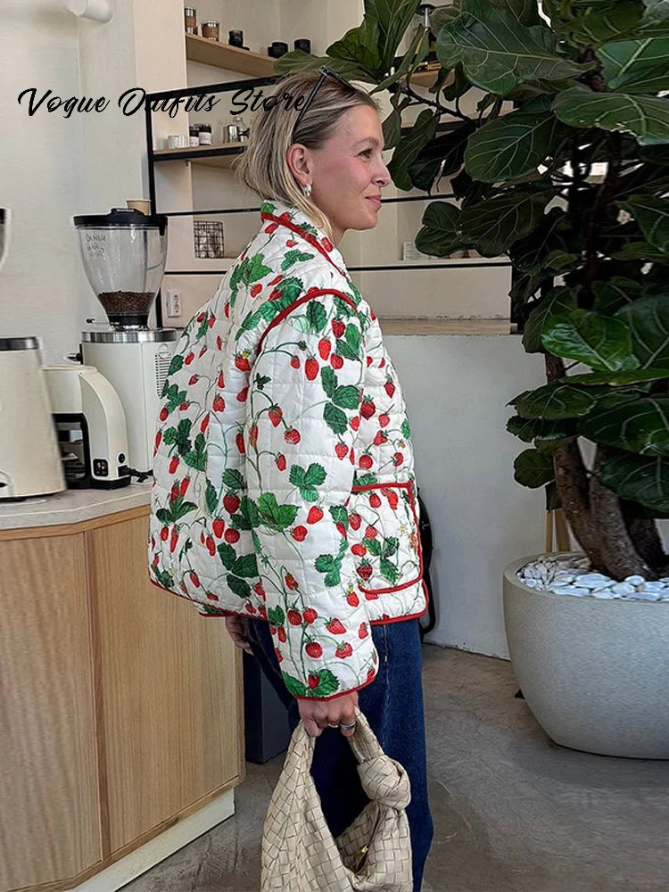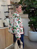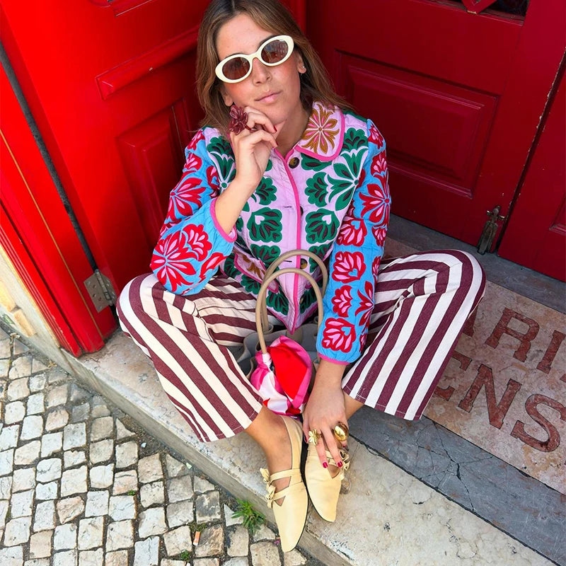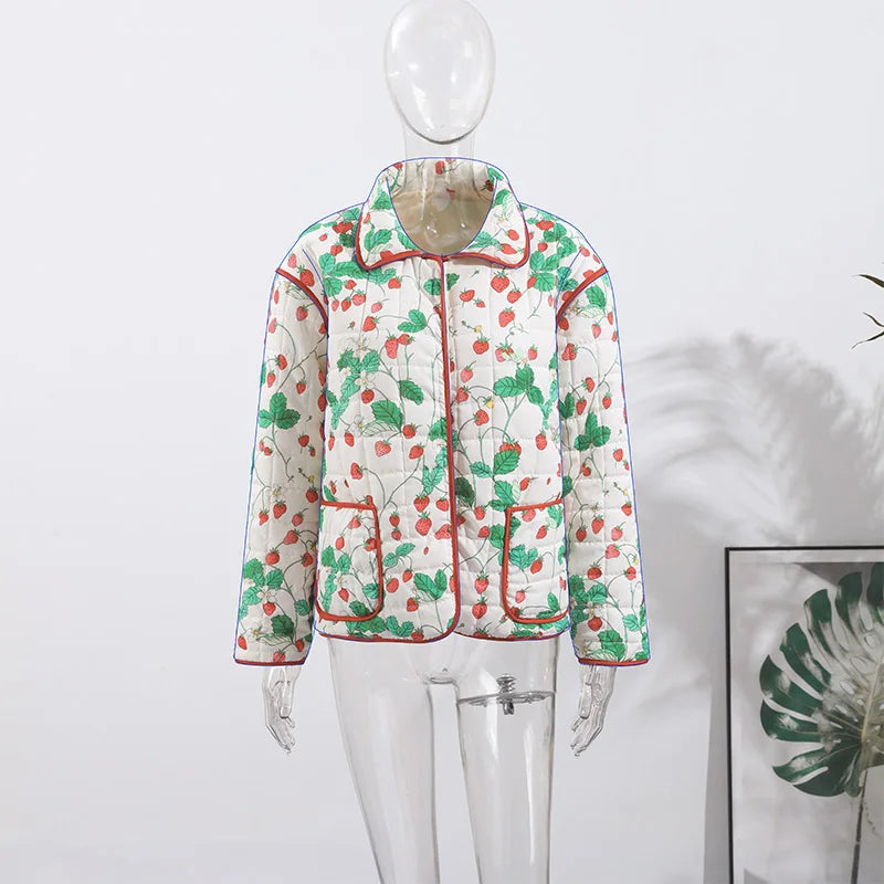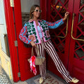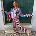Chic Colorful Print Short Coat For Ladies | Lapel Single Breasted Pocket Full Sleeve Jacket