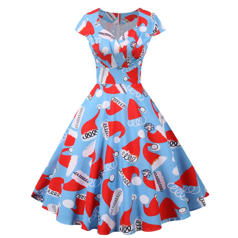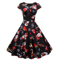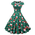 Fashion V-neck Short Sleeve Christmas Dress | Large Swing Vintage Elegant Xmas Party Dress