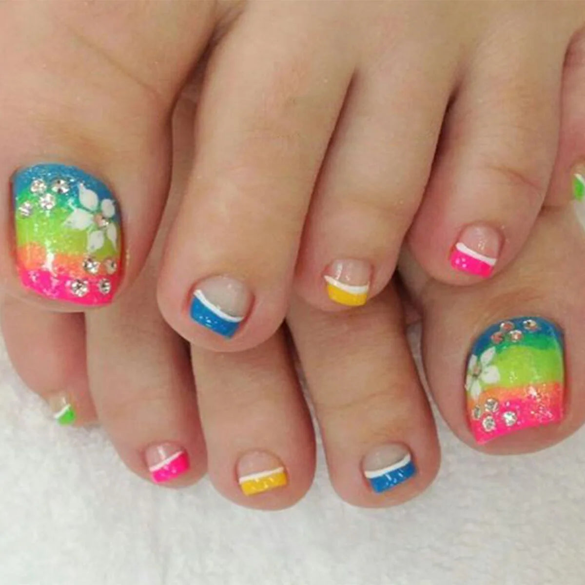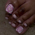 24 Short Toe Nails Pedicure with Marble Texture Design | False Nails Press on Reusable Finished Art