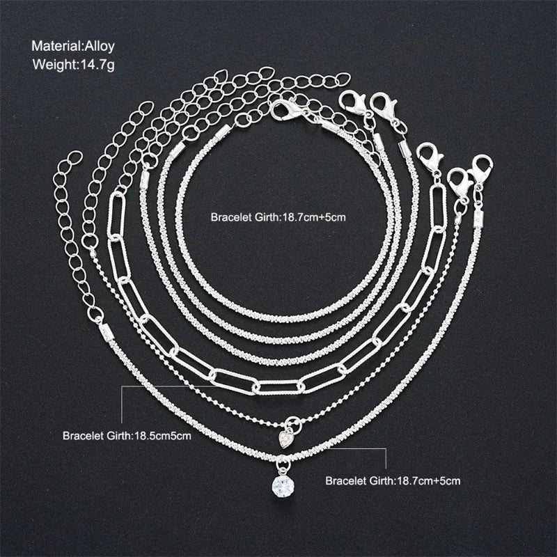 6Pcs 925 Sterling silver Rhinestone Bracelets For Women | Charm Bracelets Party Jewelry