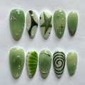 24pcs Summer Flower Press on Nails Art Short Almond Nails Set Beach False Nail Tip Pearl Seashell Design Blue Reusable Fake Nail
