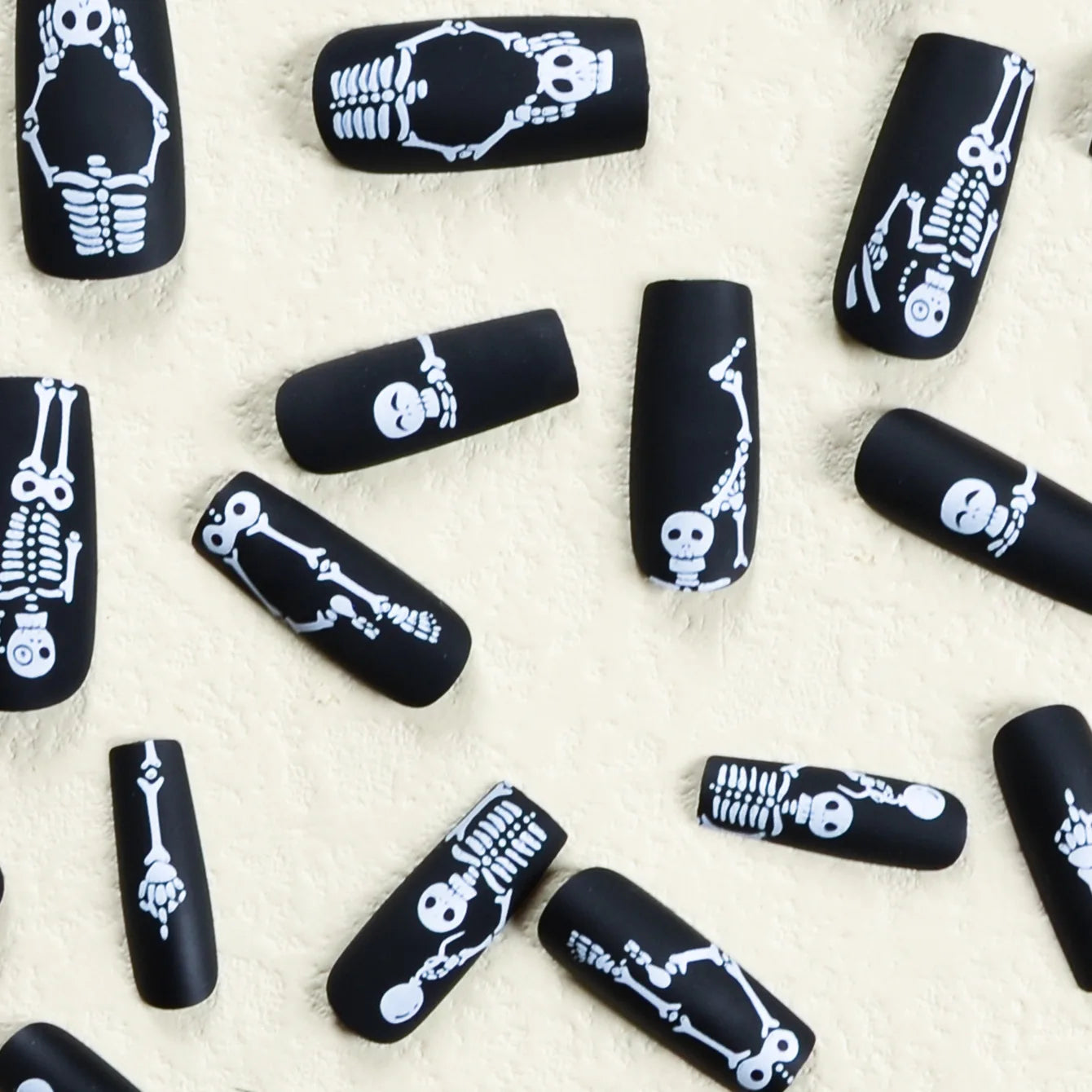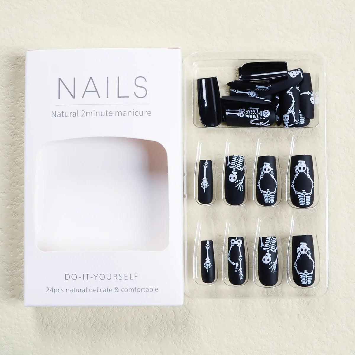 24 Skull Halloween Nails | Halloween Style Press on nails for Girl | Women Halloween Party Wearable False Nails For Gift