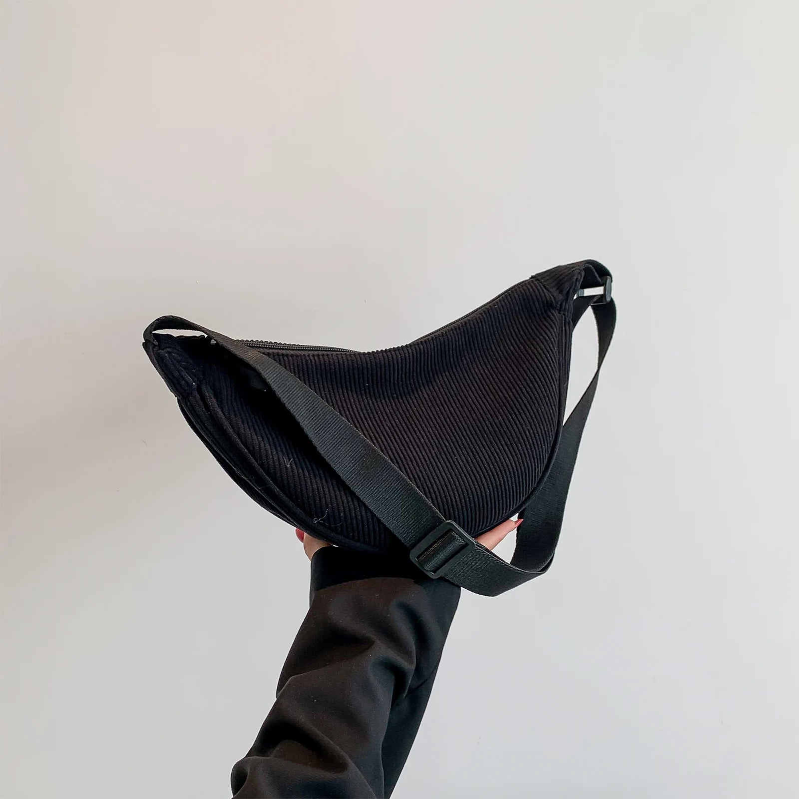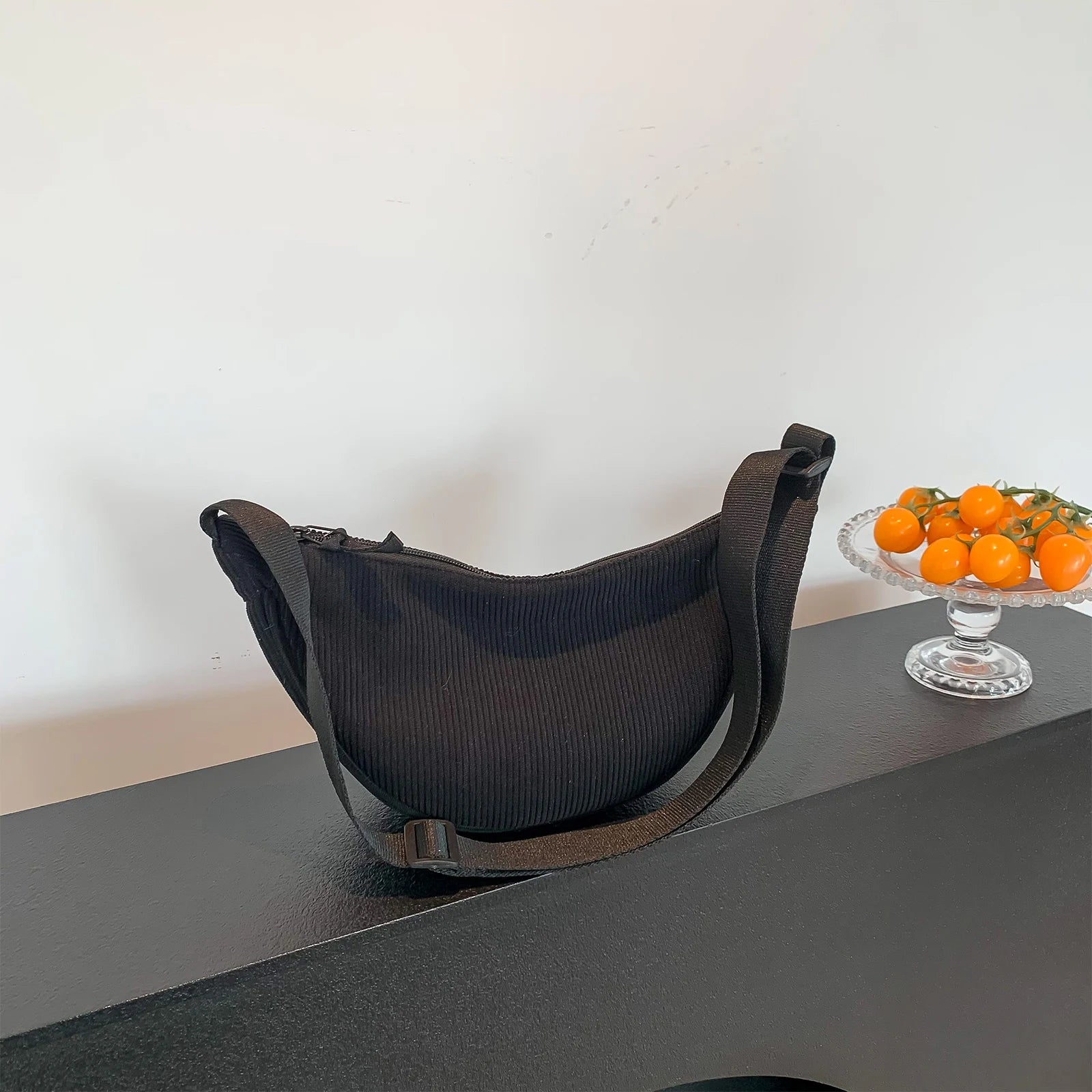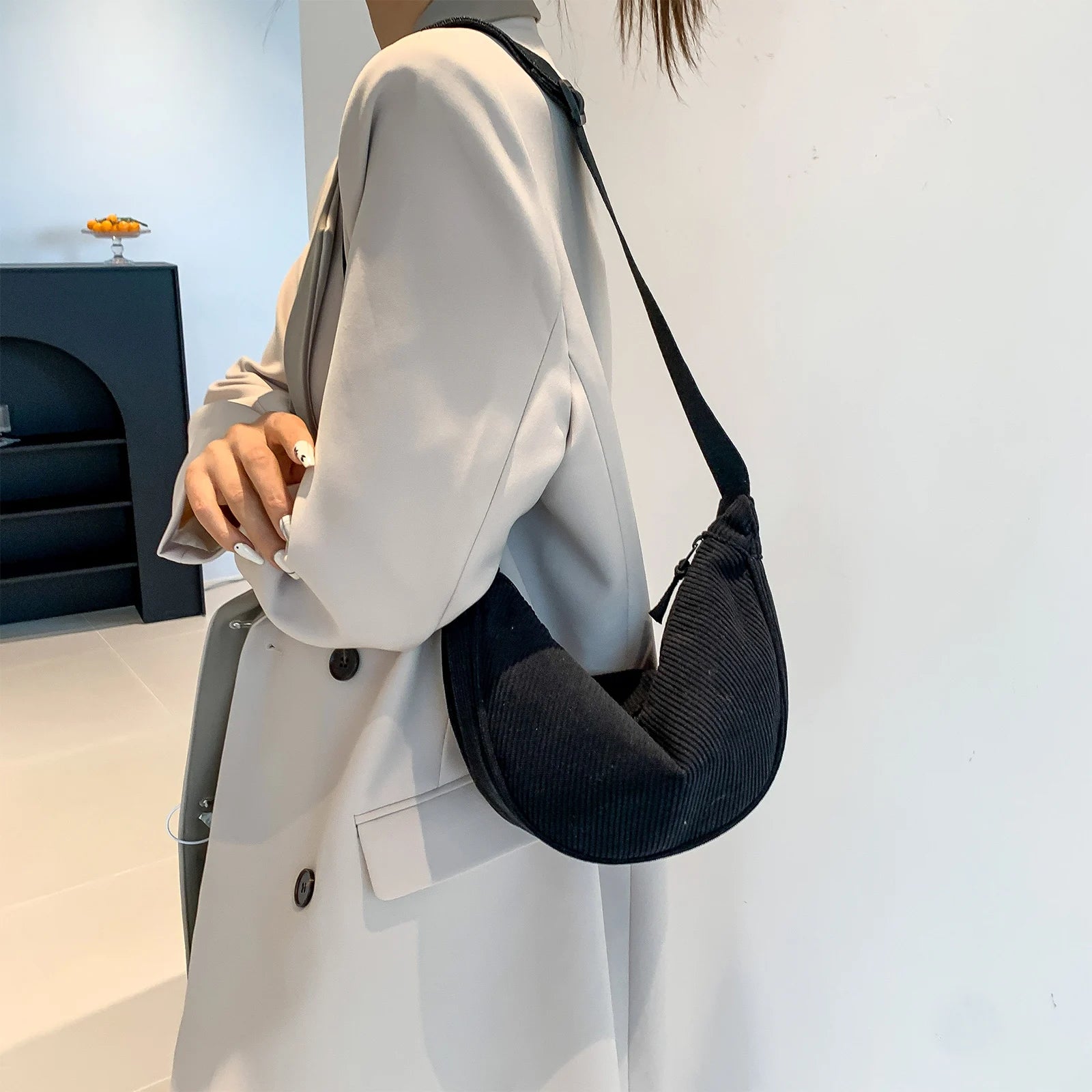 Dumpling Bag Crossbody Bag | Adjustable Strap Corduroy | Solid Color Shoulder Bag