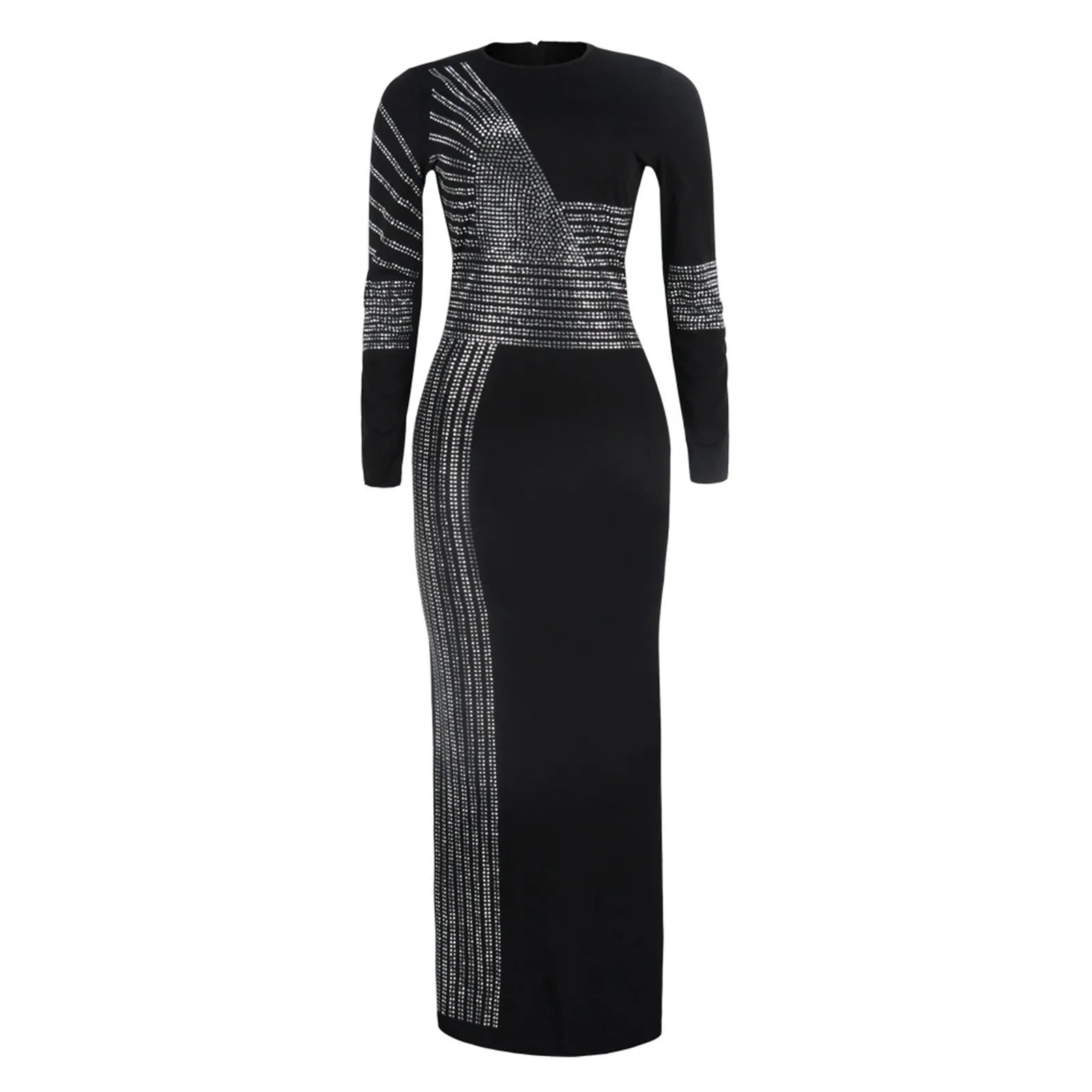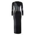Women Sexy Round Neck Long Sleeve High Slit Sequin Dress