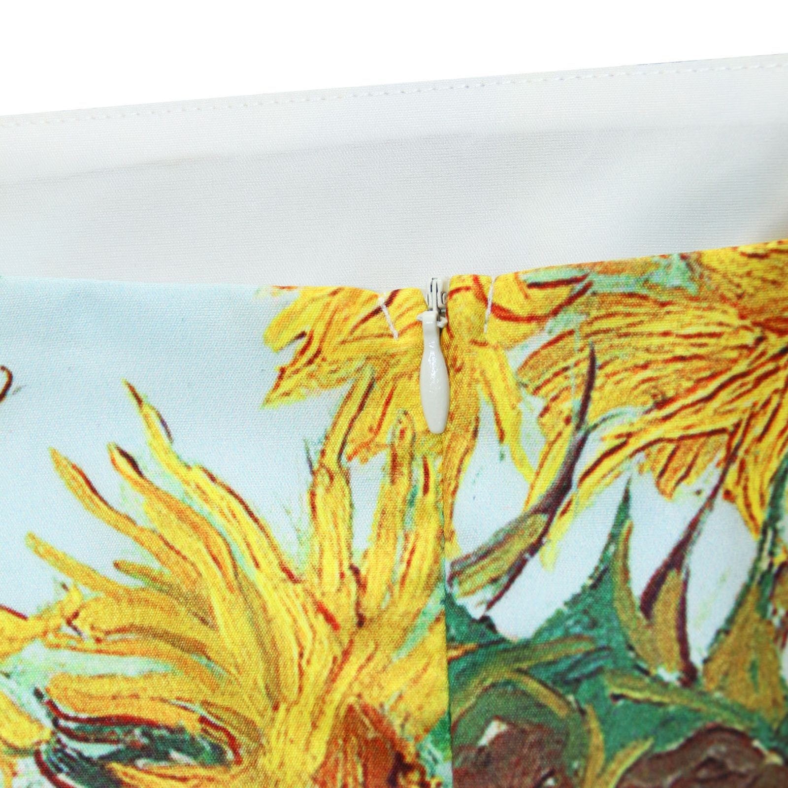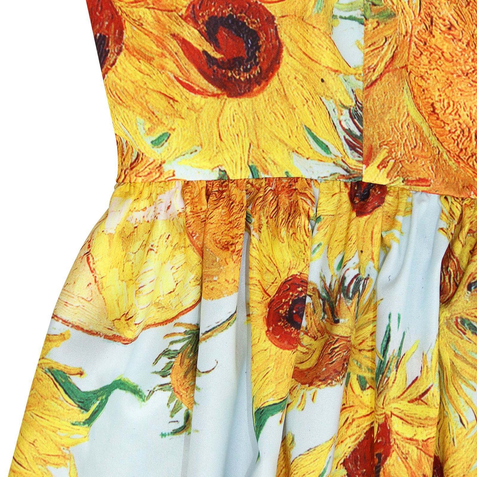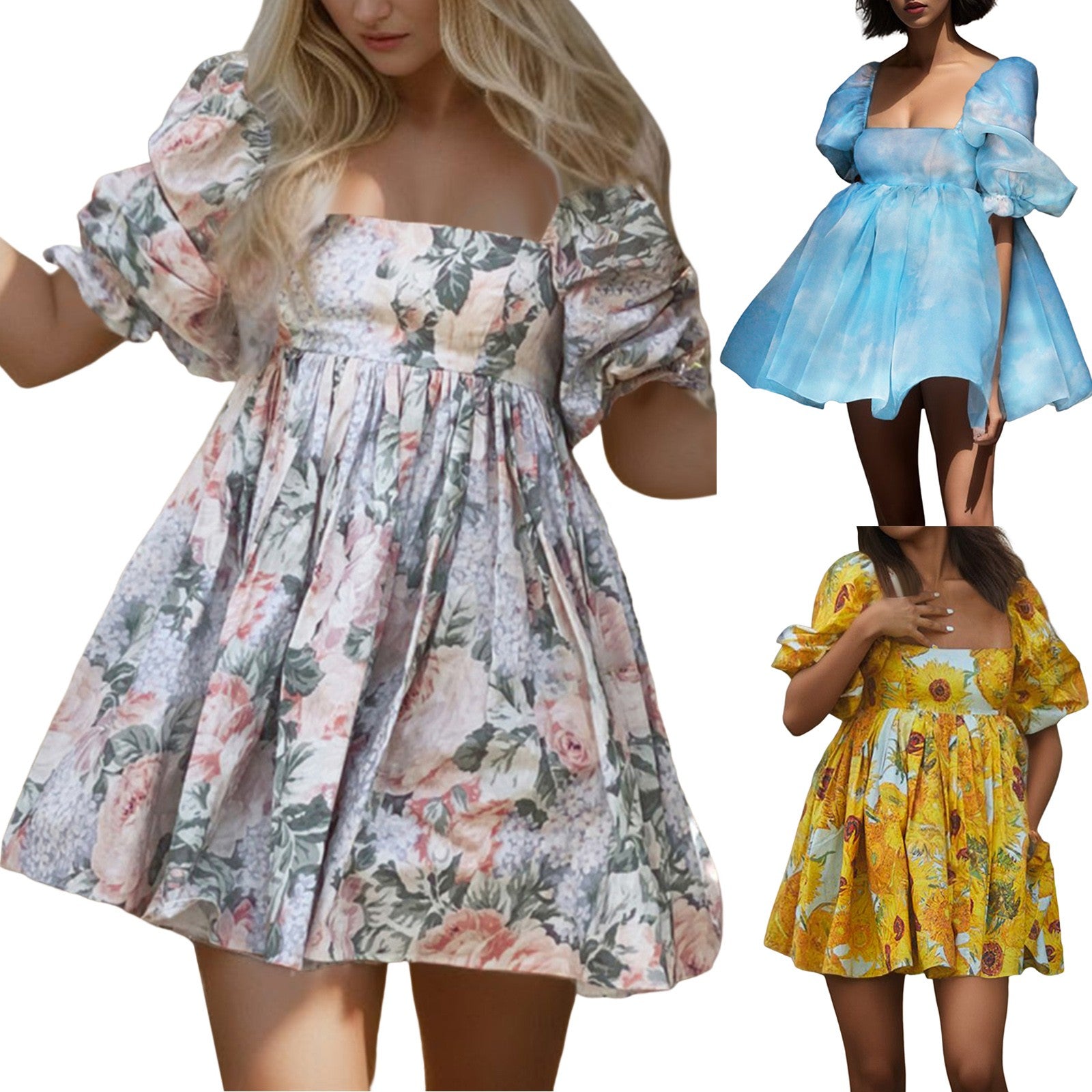 Womens Floral French Puff Sleeve High Waist Vintage Dress
