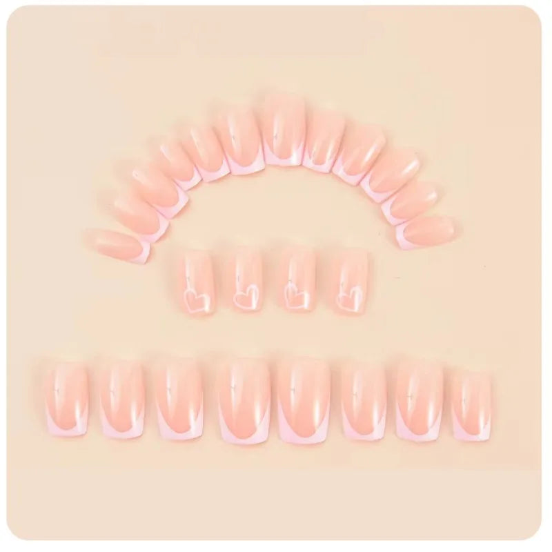 24pcs Medium Square Pink Nail Set - Short Coffin Press On Nails