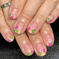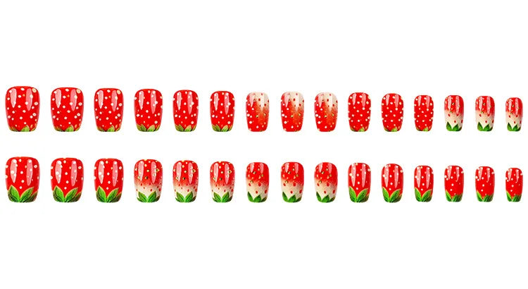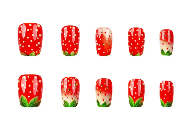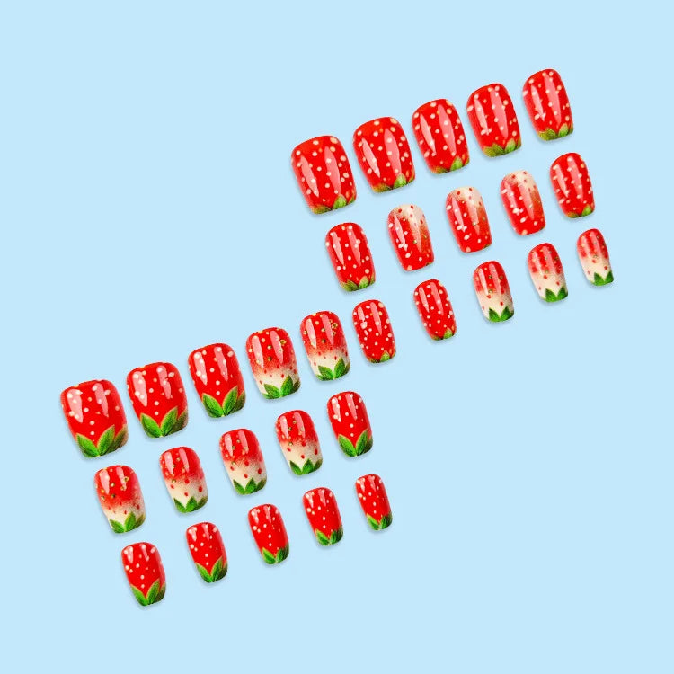 24Pcs Short Square Shape Fake Nails with Jelly Glue | Strawberry Fruit Flower Design