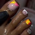 24Pcs Short Square Fake Toenail White French Rhinestone Design Press on Nails Tips Art Reusable Artificial Full Cover False Nail