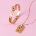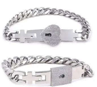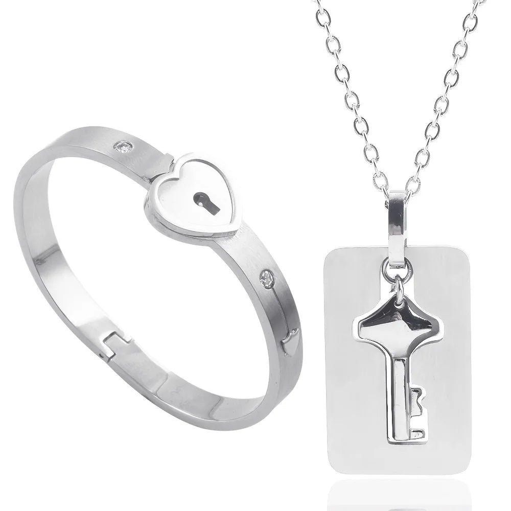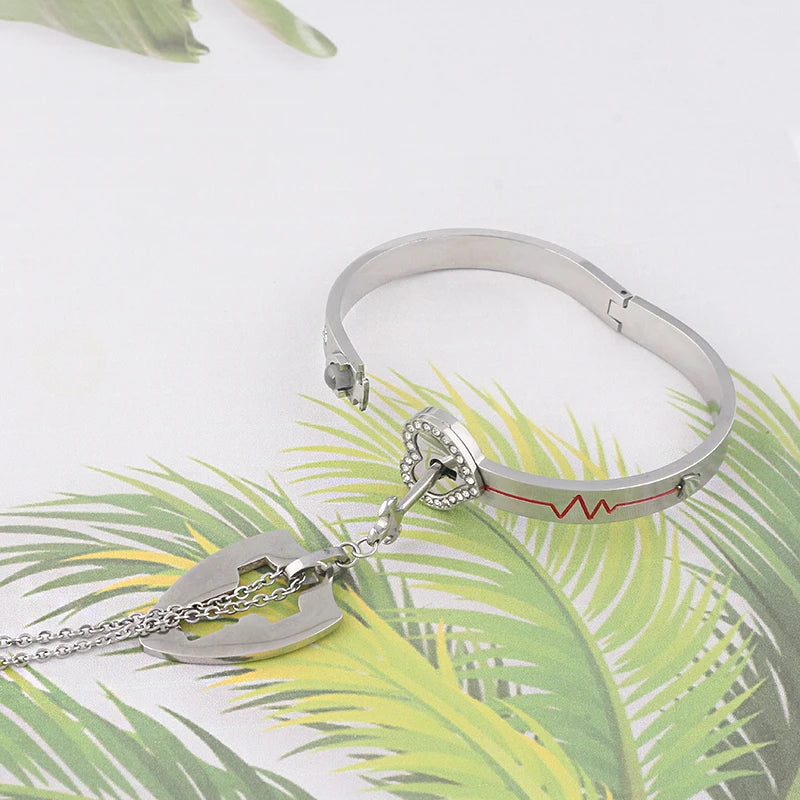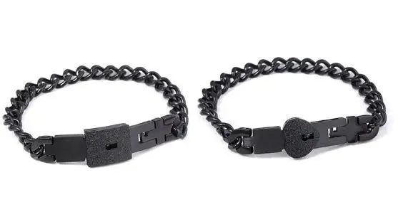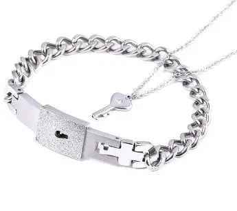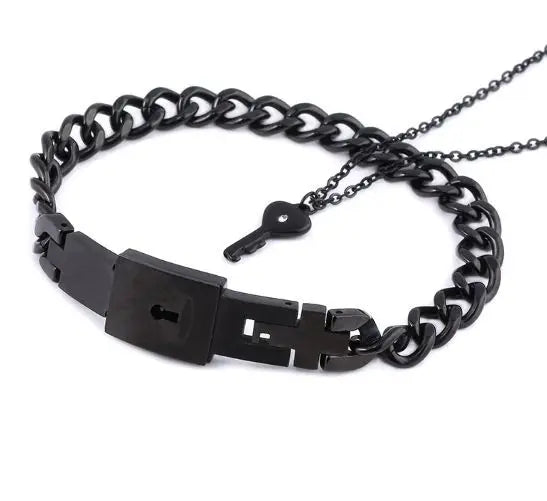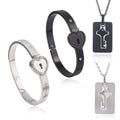 Stainless Steel Key Pendant | Black Heart Bracelet | Lover couple Valentines Day Gift