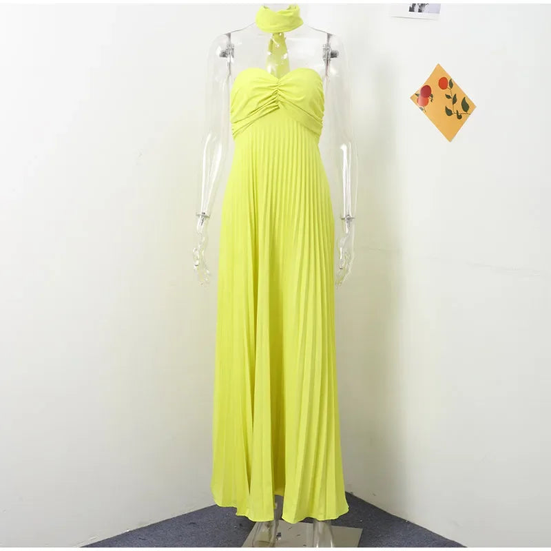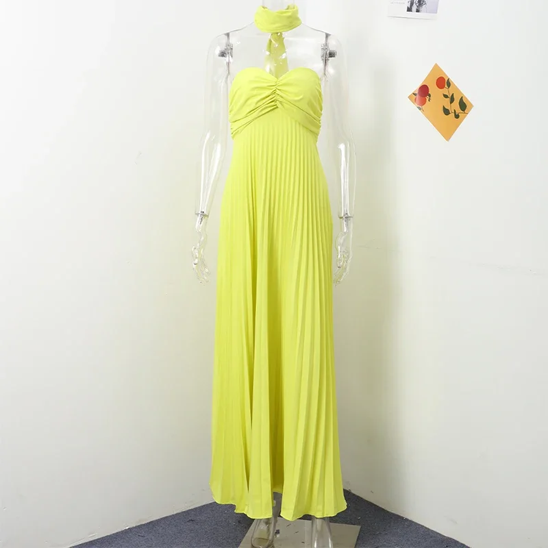 Strapless Ribbon Maxi Dress Women Elegant Sleeveless Backless Pleated Party Dresses Female 2025 Summer Sexy Lady Evening Vestido