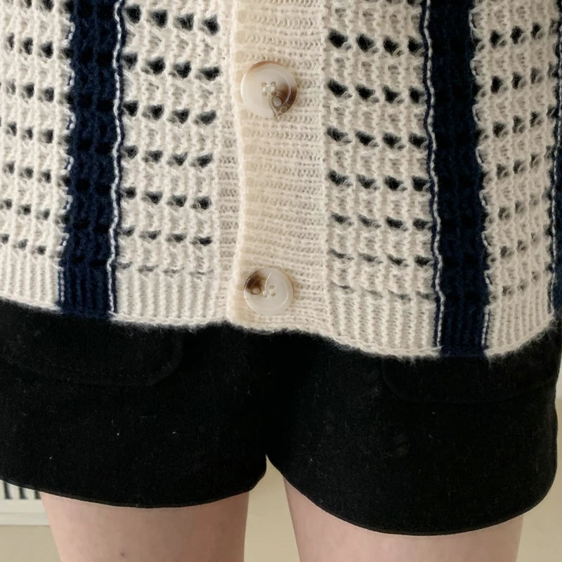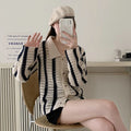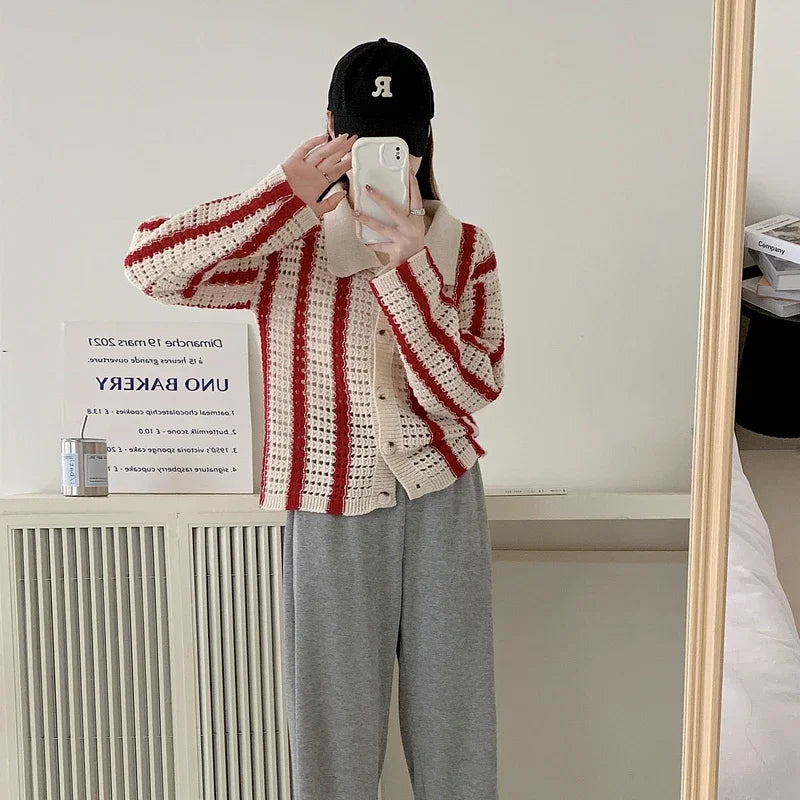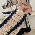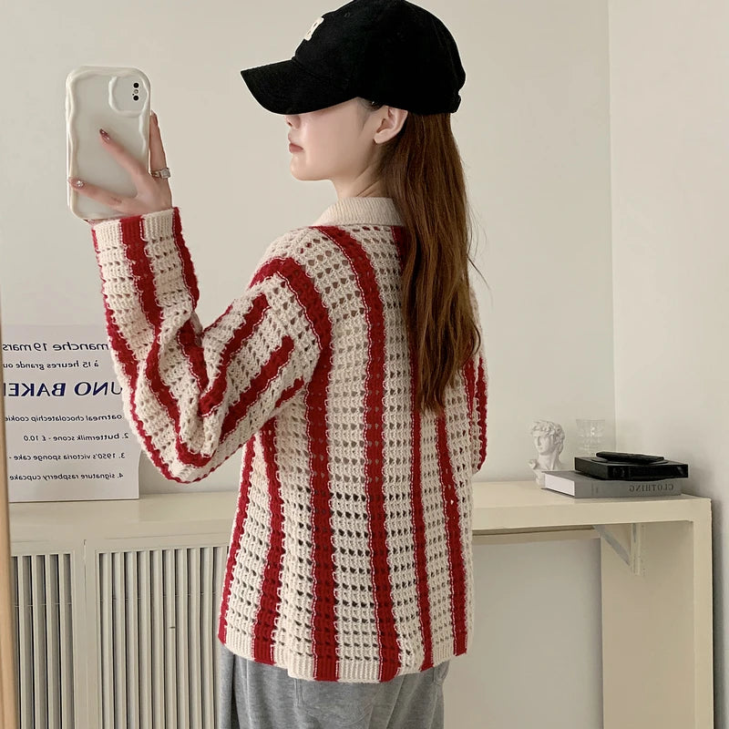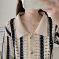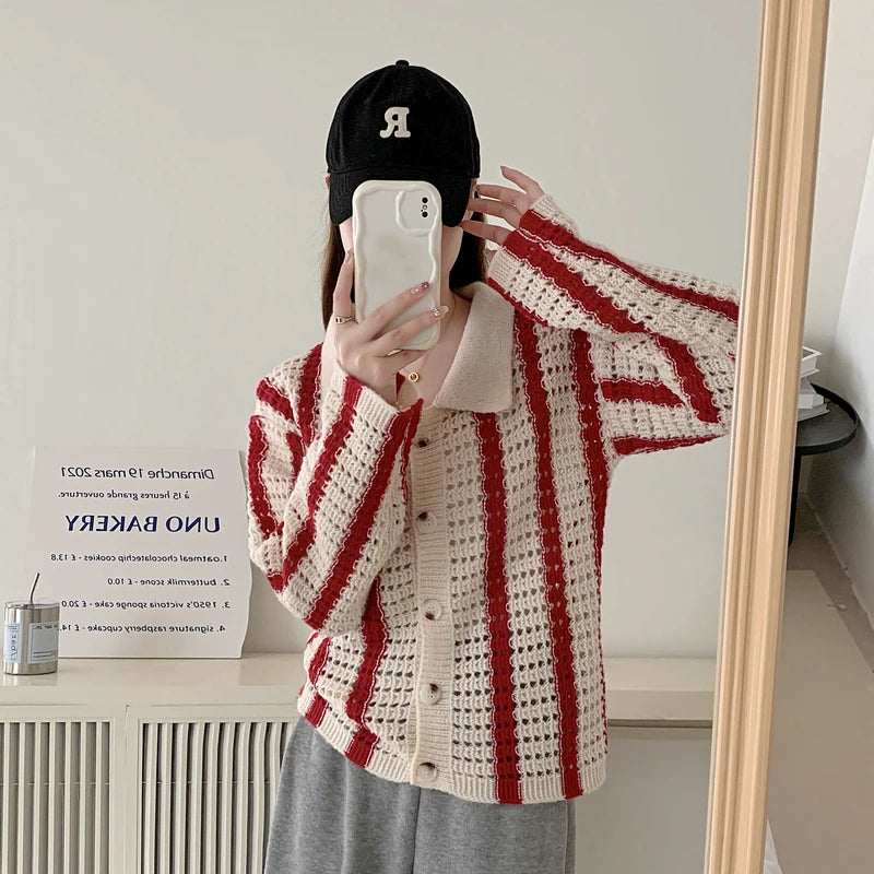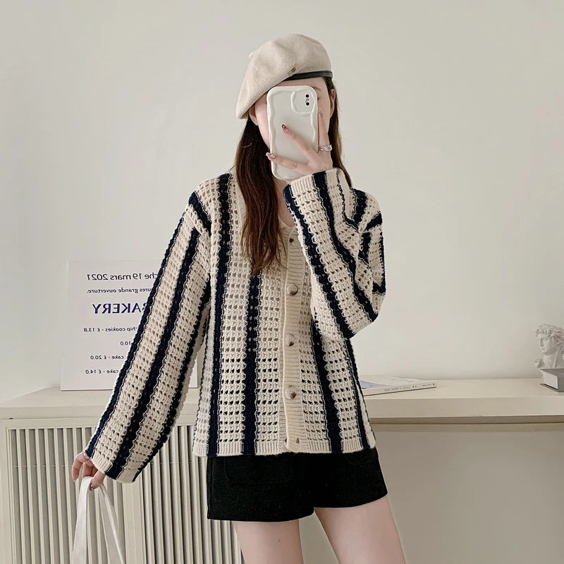 Fashion Lapel Striped Cardigan Sweater | Women Long Sleeve Knitted Coats