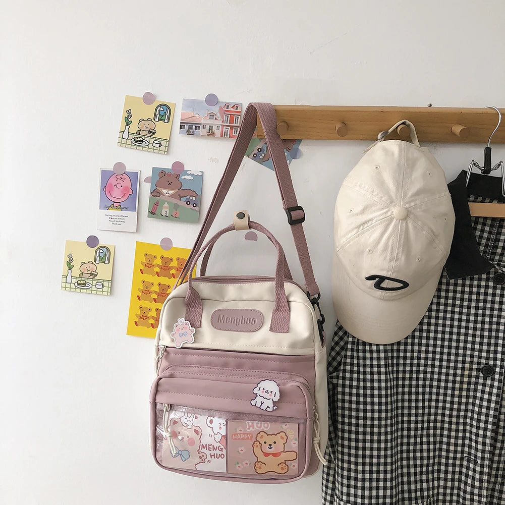 2. Large Capacity: Kawaii backpack (length: 260mm * width: 240mm * height: 90mm), the storage space of this messenger bag is big enough for your daily belongings. You can easily take your iPad, cell phone, book, wallet, makeup, etc. Perfect for school girl to carry book and stationary.