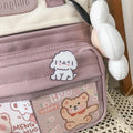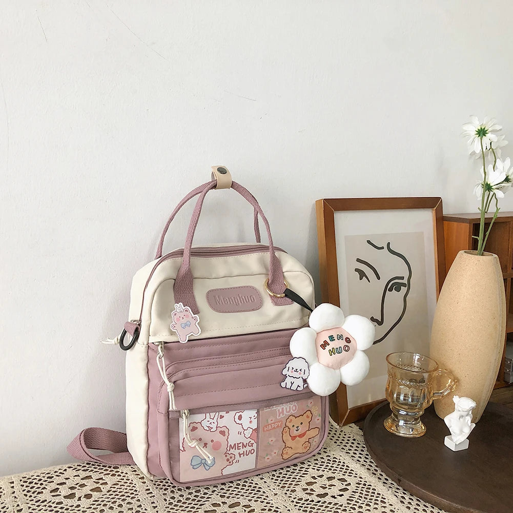 4. Kawaii Pins & Accessories: The casual students schoolbag has kawaii pins and accessories with adjustable wide long shoulder straps which can reduce the burden on the shoulders. The refined design reflects the elegant fashion and individuality of women girls and also you can decorate your bag the way you like.