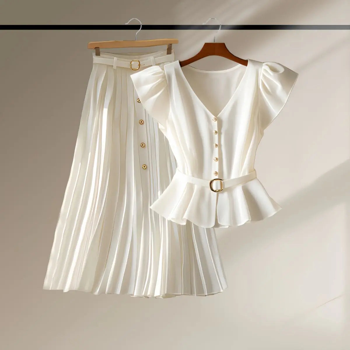 Summer Blouses Set | Midi Skirt Set White Two Piece Set Women Outfits