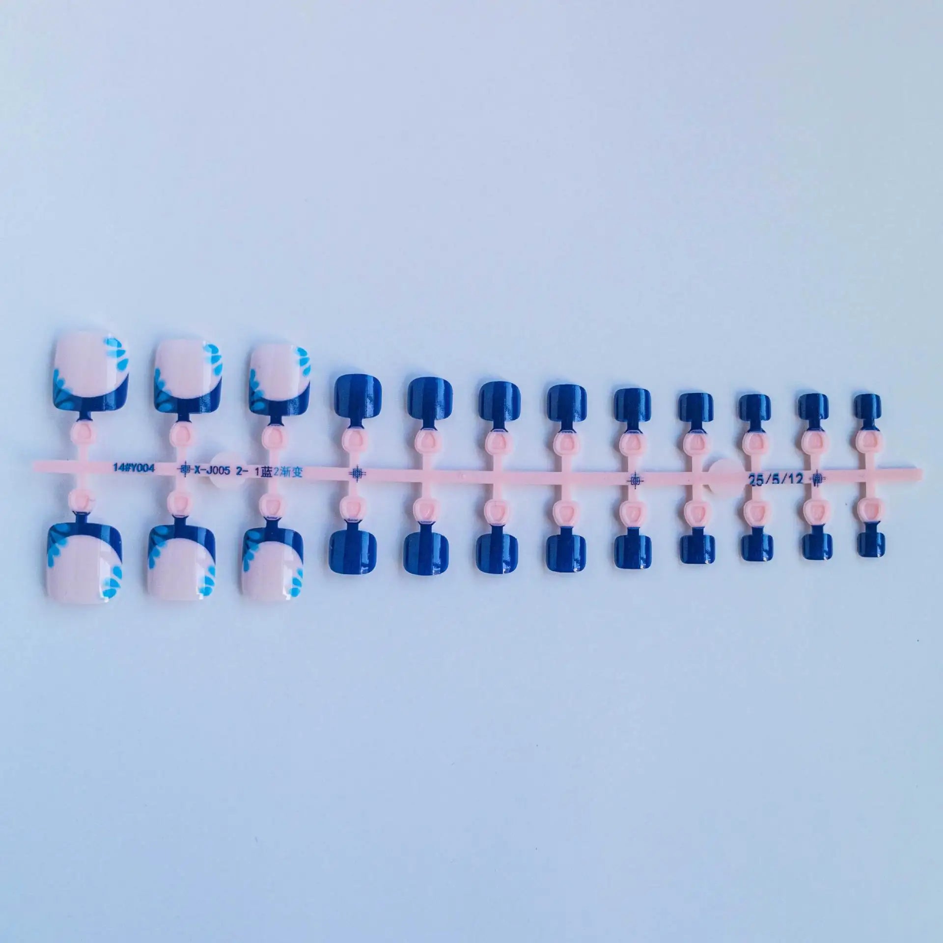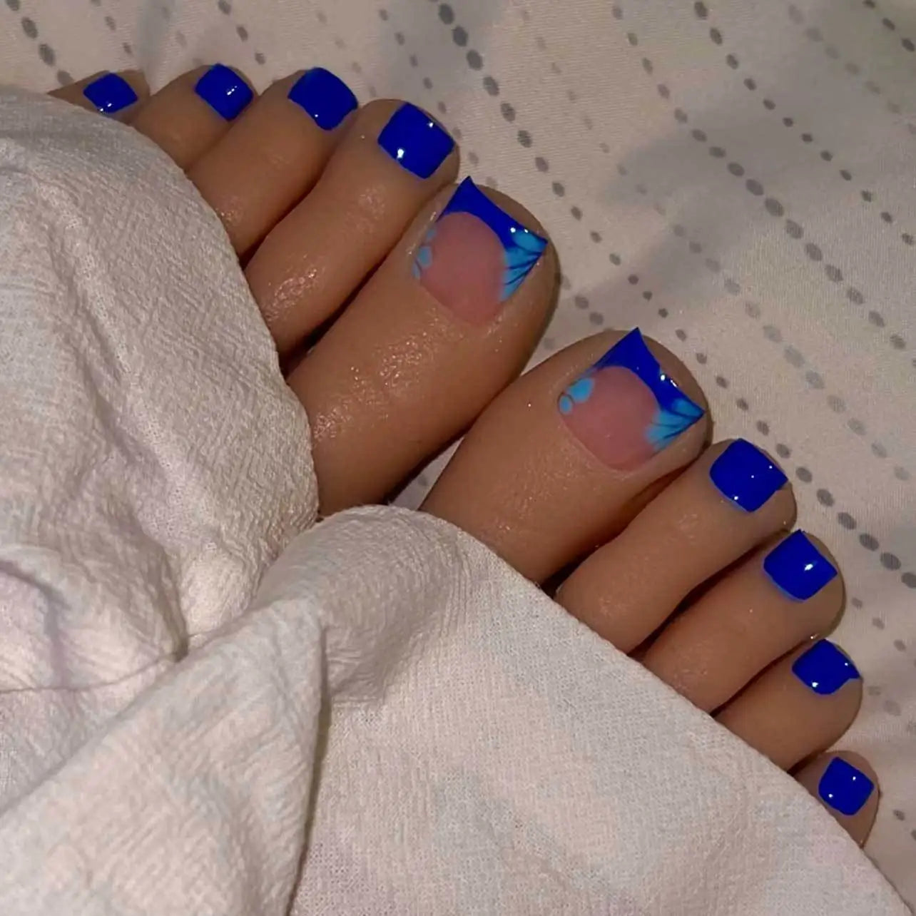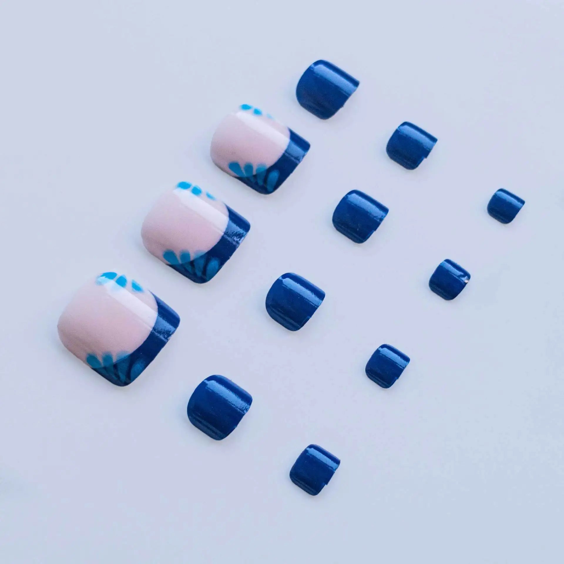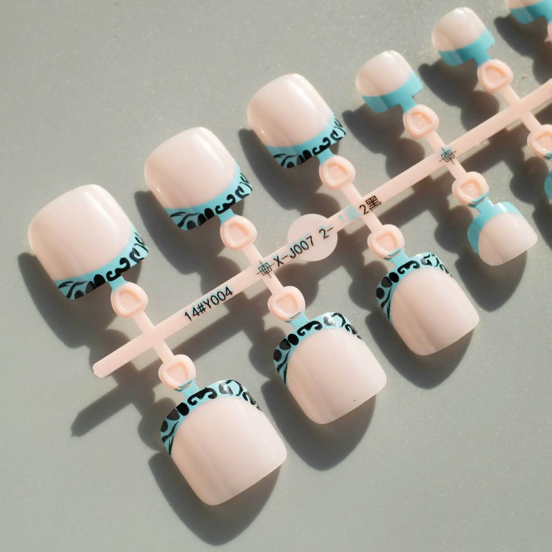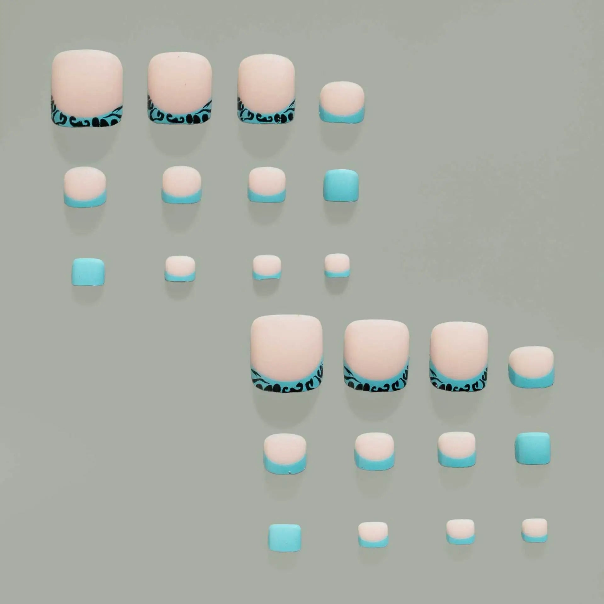 Summer Blue French Tip Fake Toenails 24Pcs Nude Color Press On Toe Nails Simple DIY Manicure Full Cover Acrylic False Toenails