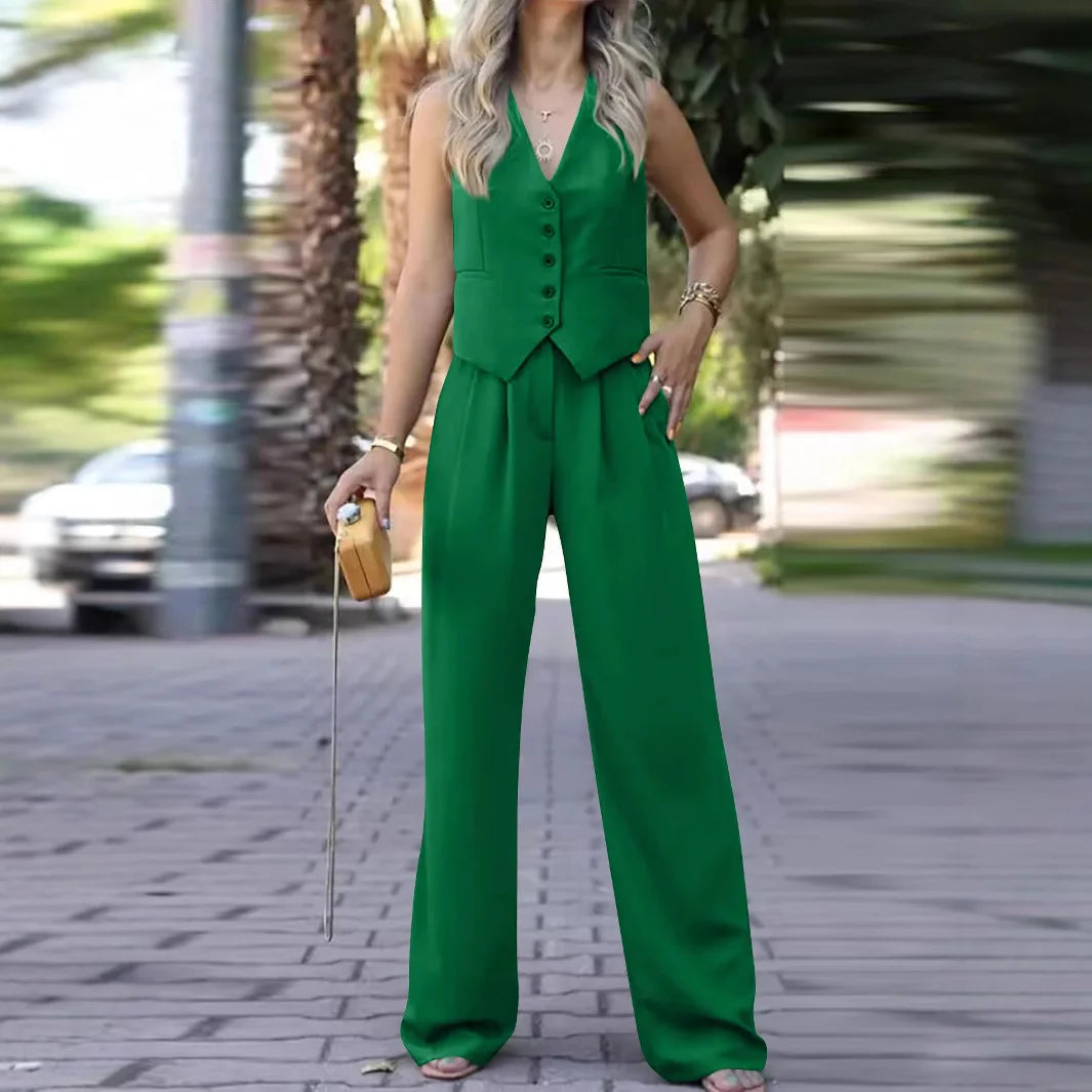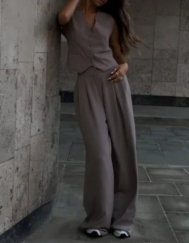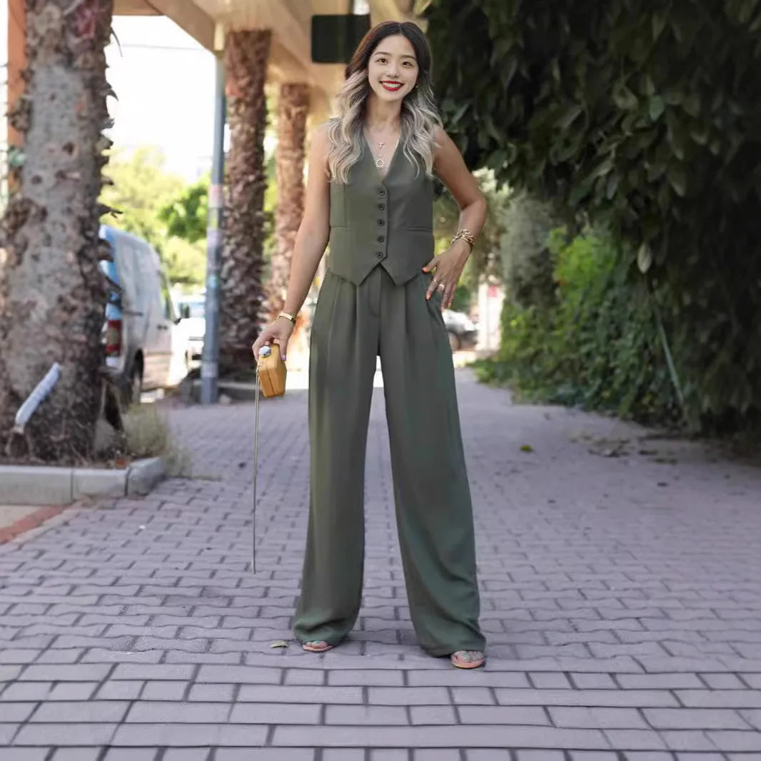 Summer Fall Outfits | Women's Fashion V-neck Sleeveless Vest 2-Piece Sets Outfit