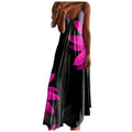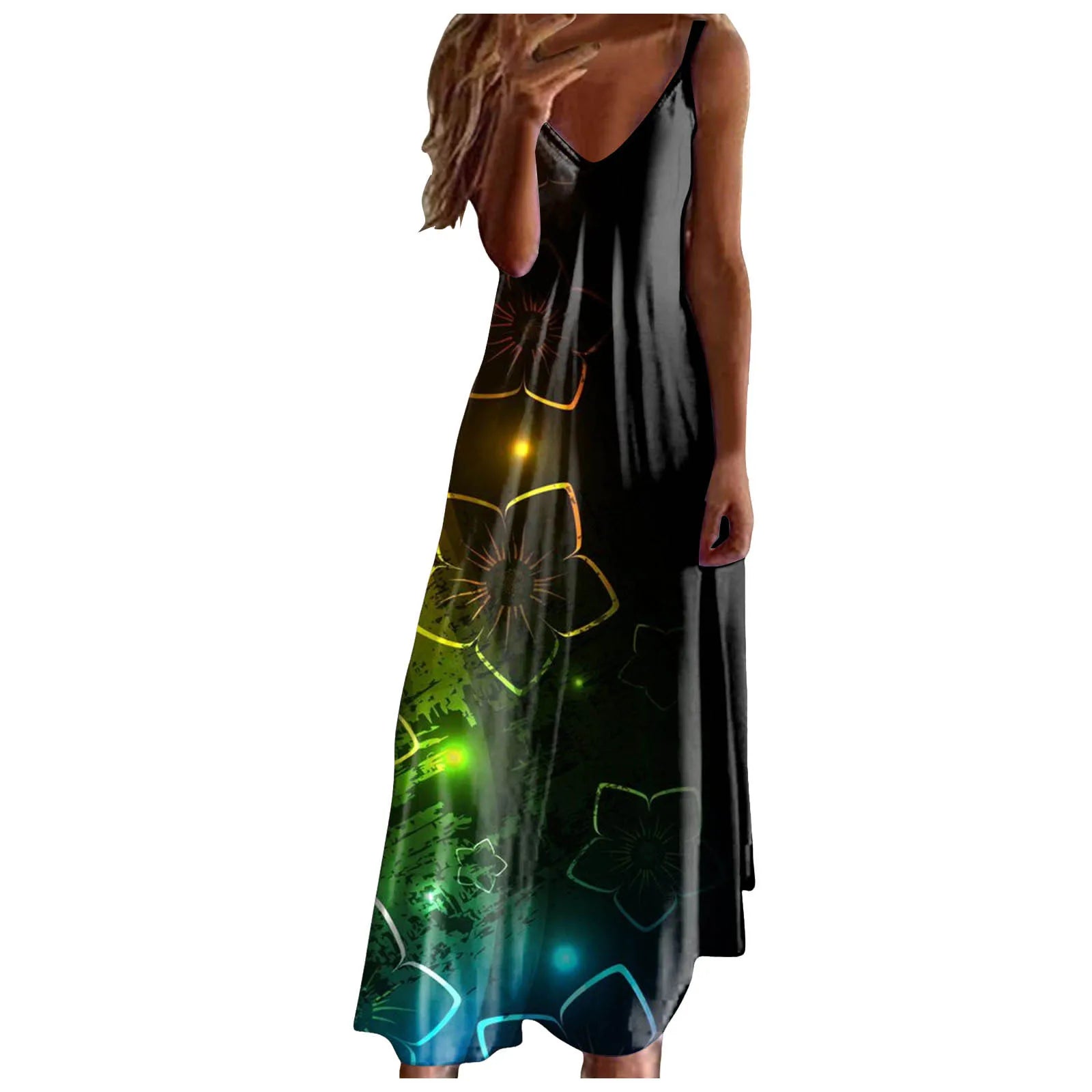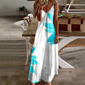 Women Summer Sexy V Neck Suspender Long Dress Fashionable Printed Vacation Beach Dress