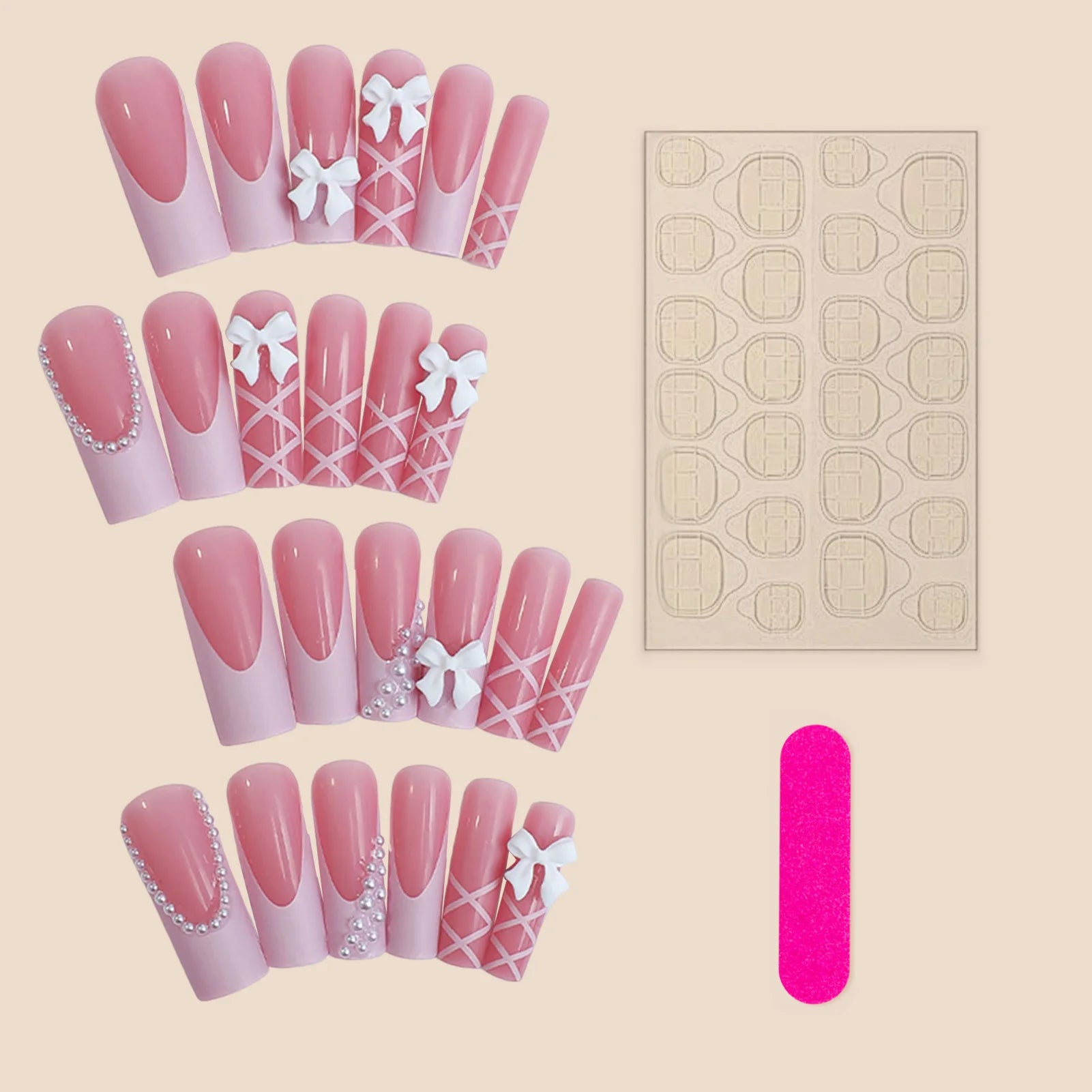 Easy Application and Removal: The removable artificial nail with bow pearl design allows for hassle-free application and removal, making it convenient for at-home use or nail salon professionals.