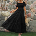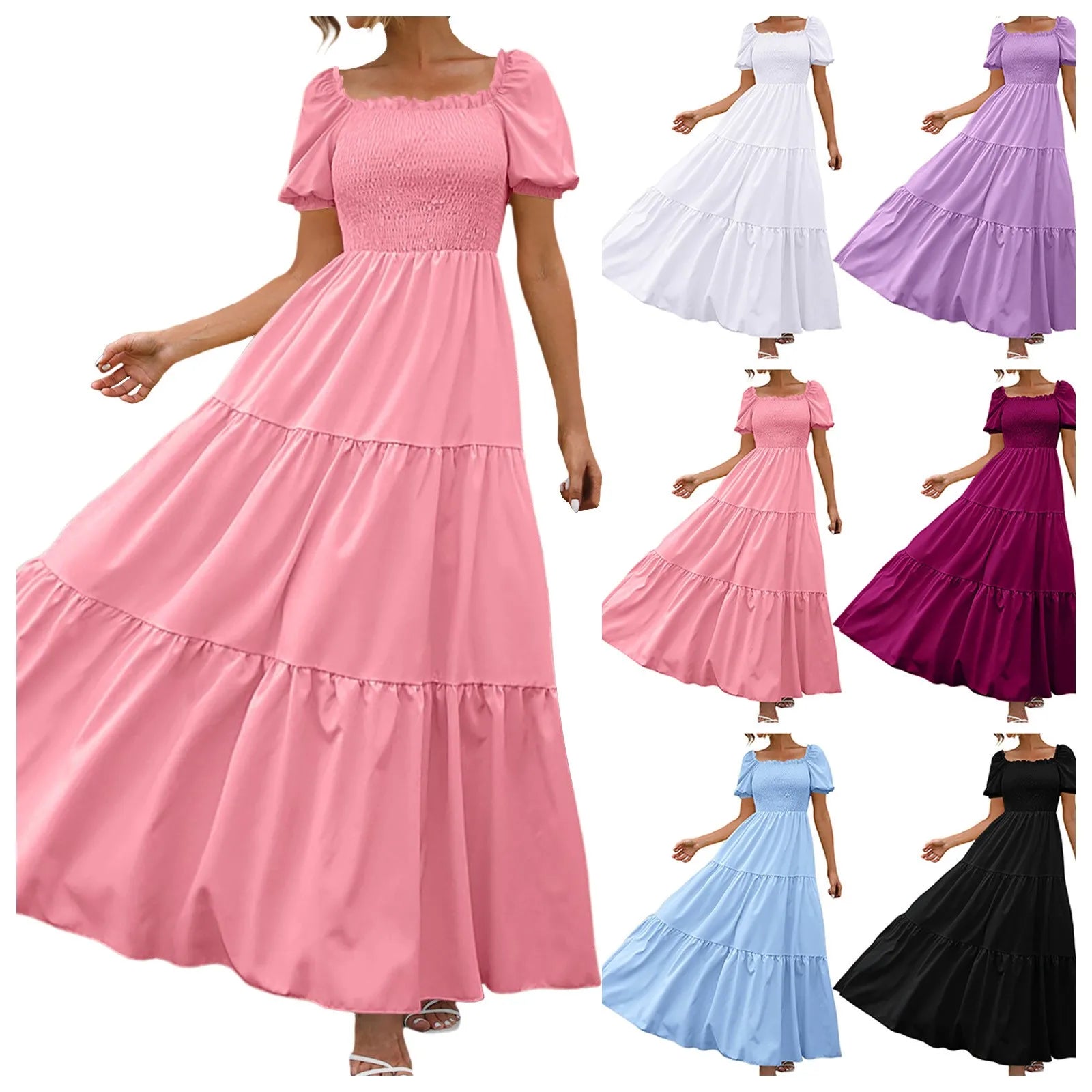 Puff Sleeve High Waist Square Neck Summer Party Dress