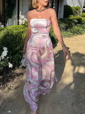 Chic Summer Pattern Dress with Hollow Details and Pleats