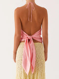 Women Floral Halter Cami Tops Tie-up Open Back Sleeveless Crop Tops Summer Streetwear