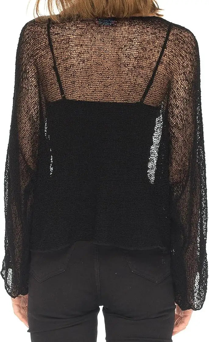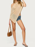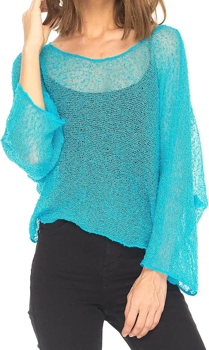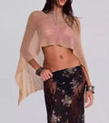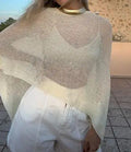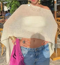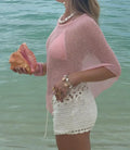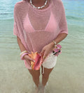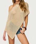 Women Knit Cover-up, See-through Solid Irregular Loose Pullover Summer Beach Tops