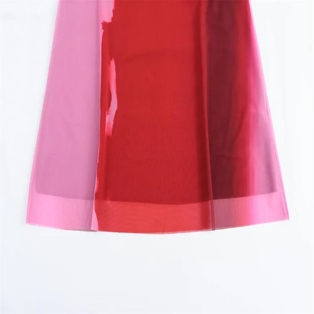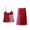 Summer Vintage Outfits | Printed Two-piece Sets Women Fashion Sleeveless Sexy Printed Silk Mesh Sling Tops