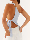 Off One Shoulder Tank Tops for Women Solid Stylish Side Tie Design Summer T-Shirt