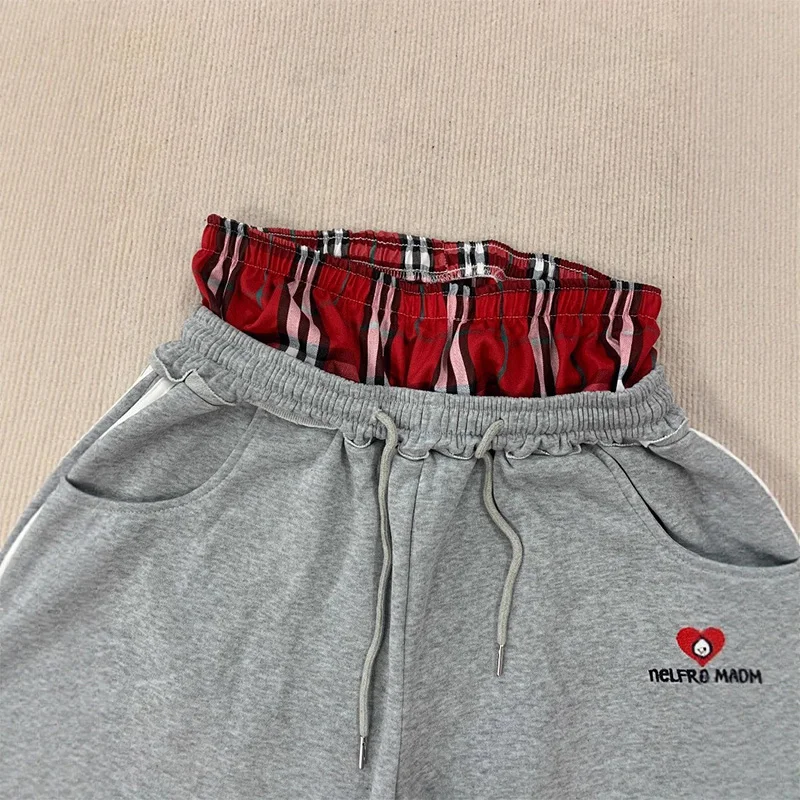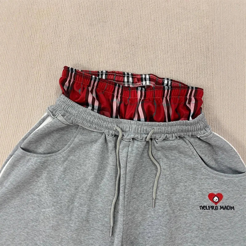Sweatpants Vintage | Y2K pants vintage Harajuku double Embroidered waist Sweatpants