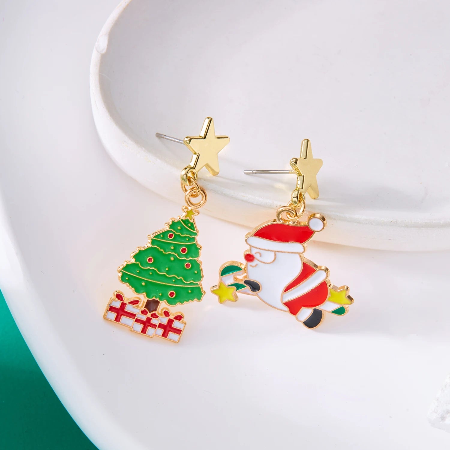 Moving Santa Claus tassel charm drop earrings | Earring New Year Jewelry