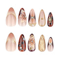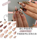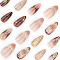 24Pcs Y2k Almond Brown Amber Flowers False nails Gold Ripple Star Pearl Rhinestone Fake Nails Art Girl French Press on Nail Tips