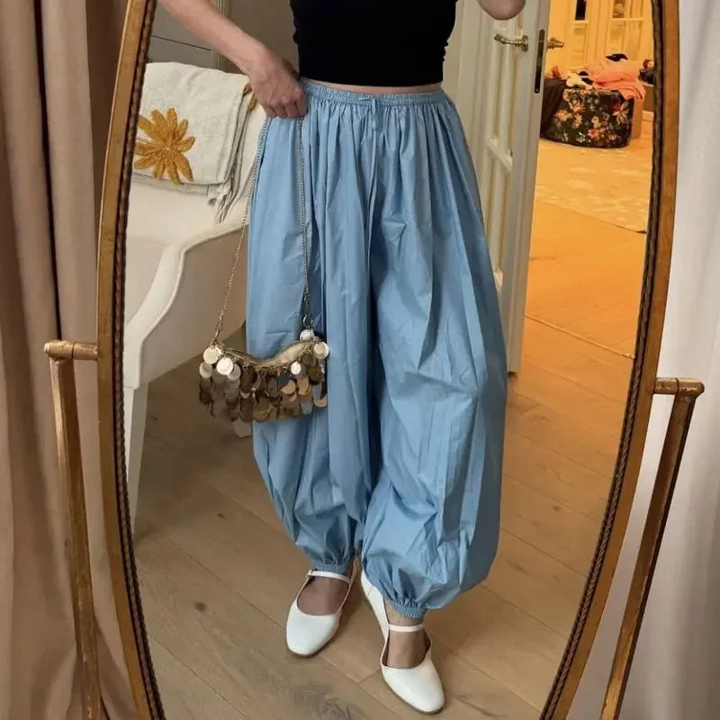 Trouser Length For Ladies | Pleated High Waist Casual Bloomer Pants