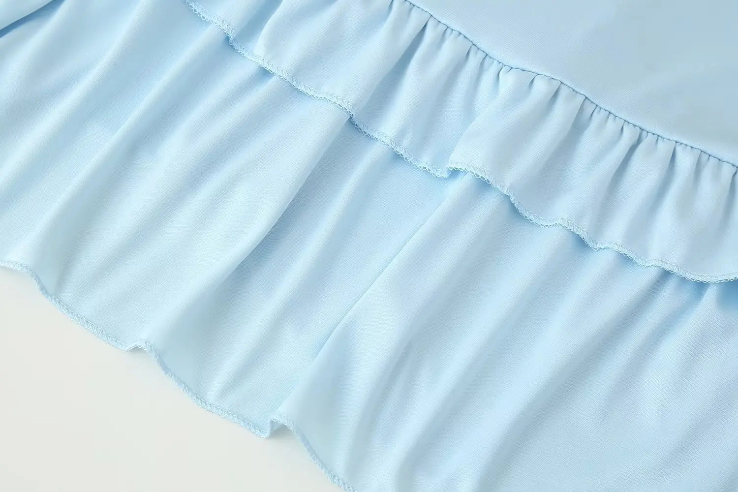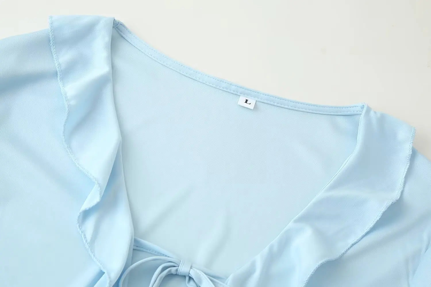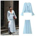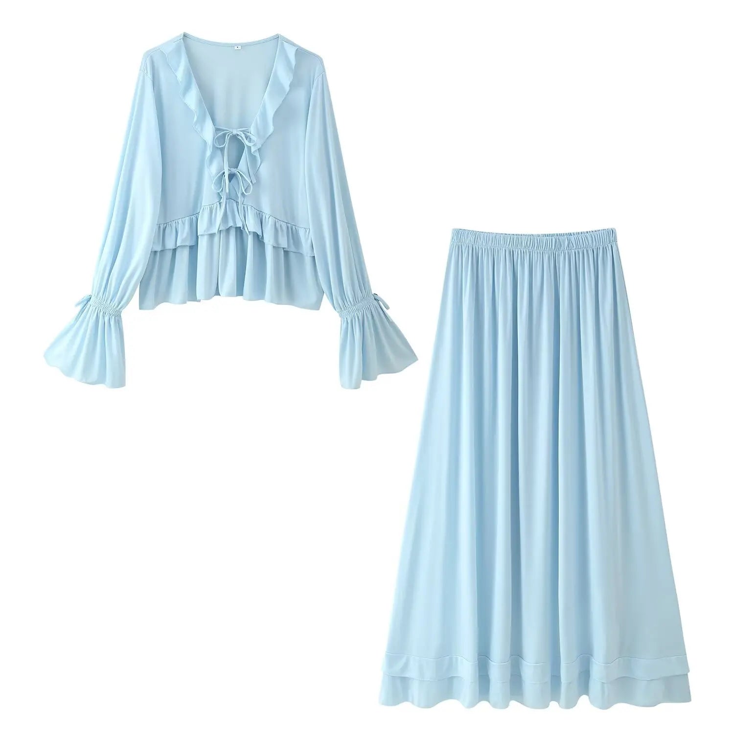 Two Piece Sets Skirt and Top | Ruffled long-sleeved shirt with high waist A-line skirt