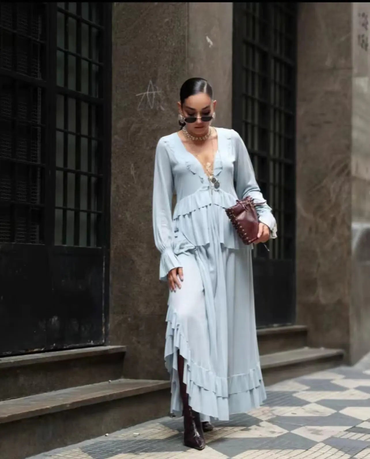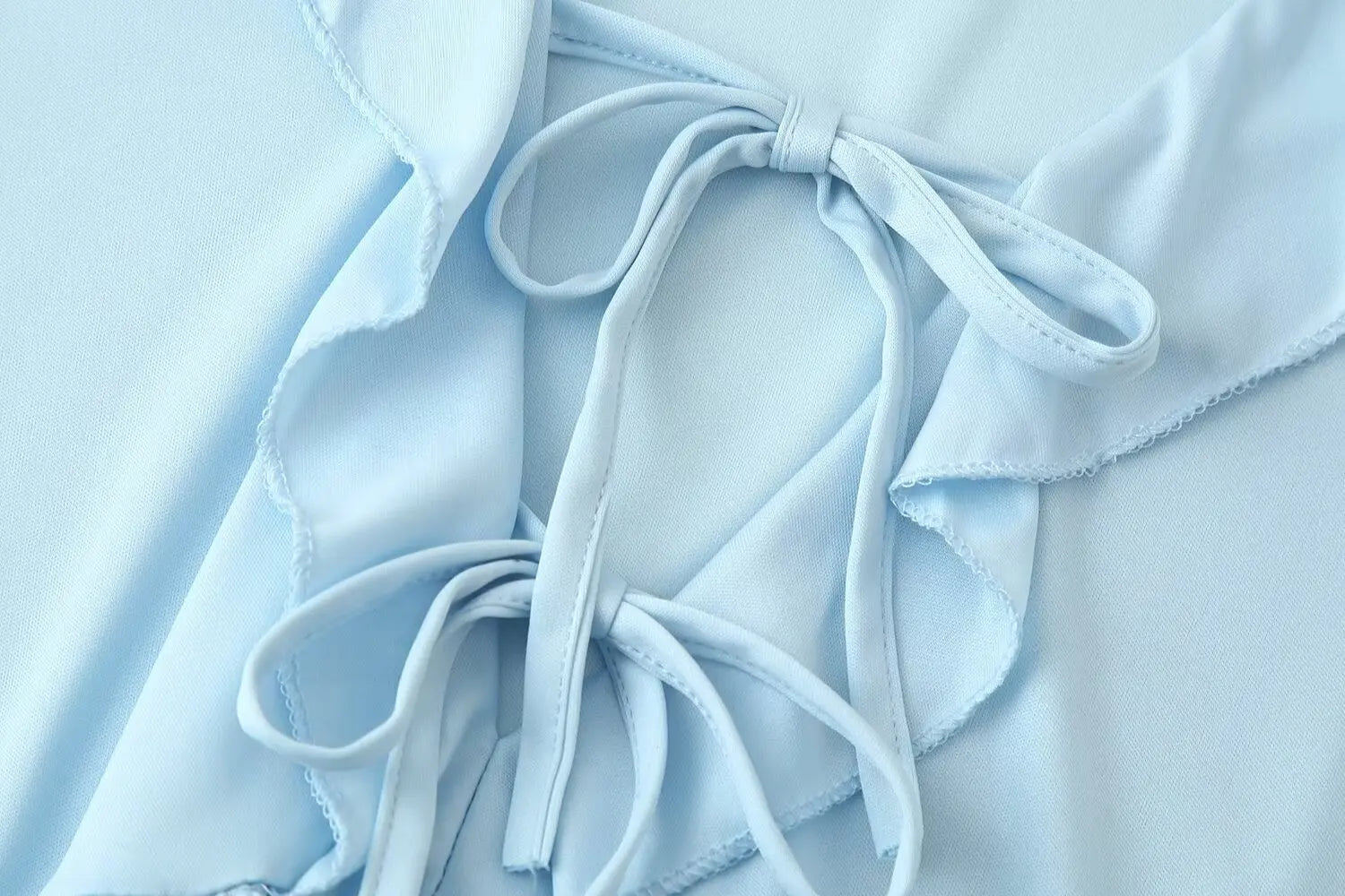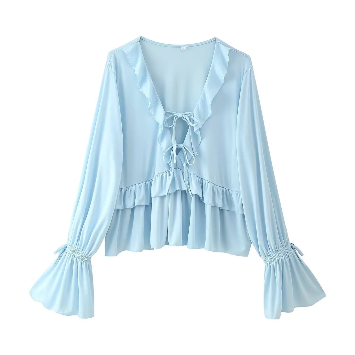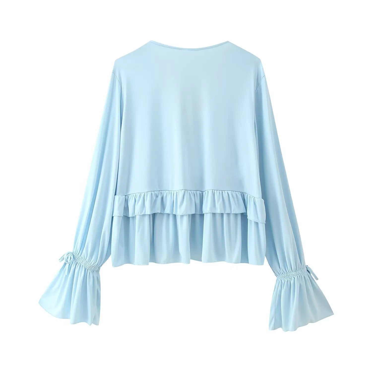 Two Piece Sets Skirt and Top | Ruffled long-sleeved shirt with high waist A-line skirt