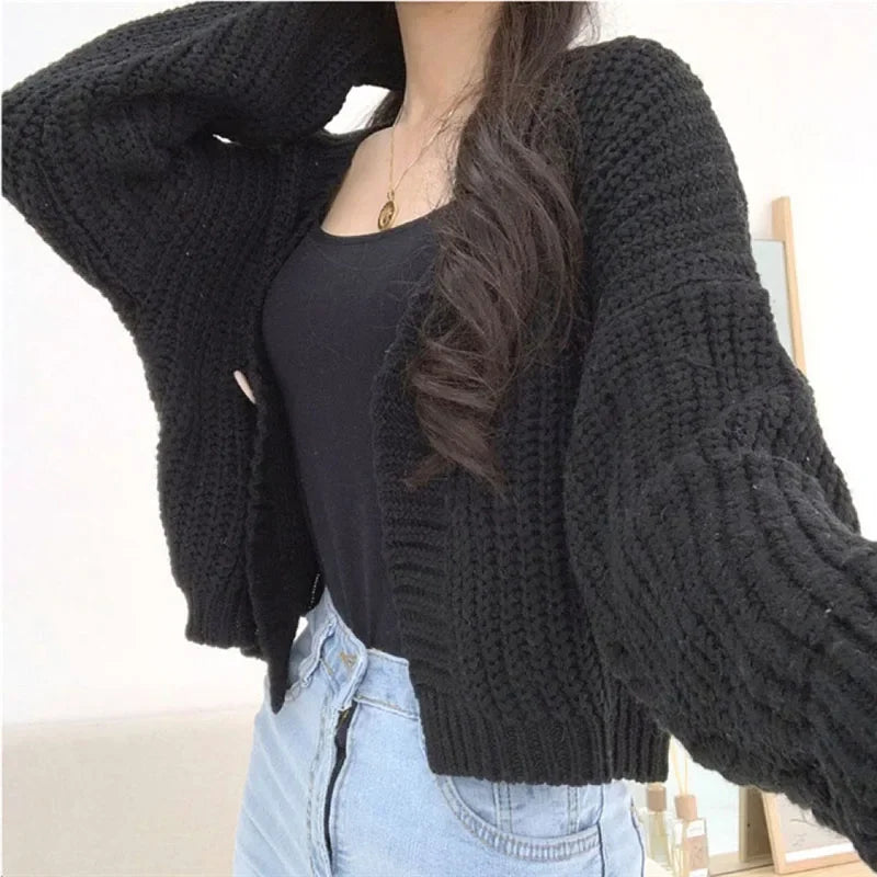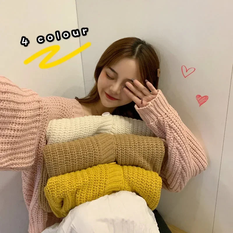 V Neck Knitted Cardigan | Women's Solid Color Button Long Sleeve Jumper