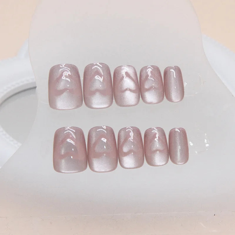 24 pcs Valentine Nails Design | French cat eye love nails +1 nail glue +1 nail file
