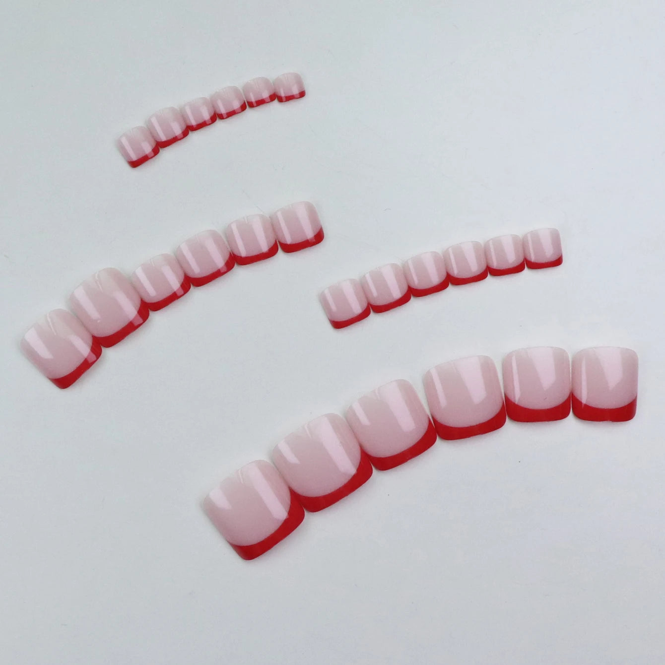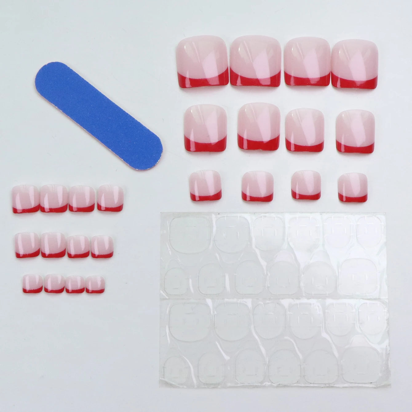 24pcs Valentines Toe Nails | False Toe set 1pc Nail File & 1Nail Glue Sticker Kit Nails
