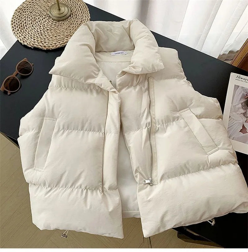 New Winter Warm Cropped Vest Jackets for Women | Fashion Sleeveless Stand Collar Zip Up Puffer Waistcoat