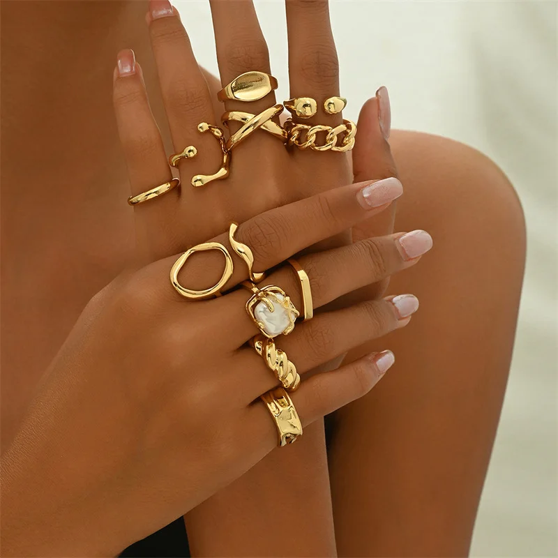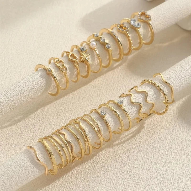 Vintage Rings Set | Fashion Geometric Knuckle Rings Set For Women | Vintage Crystal Heart Gold Color Rings