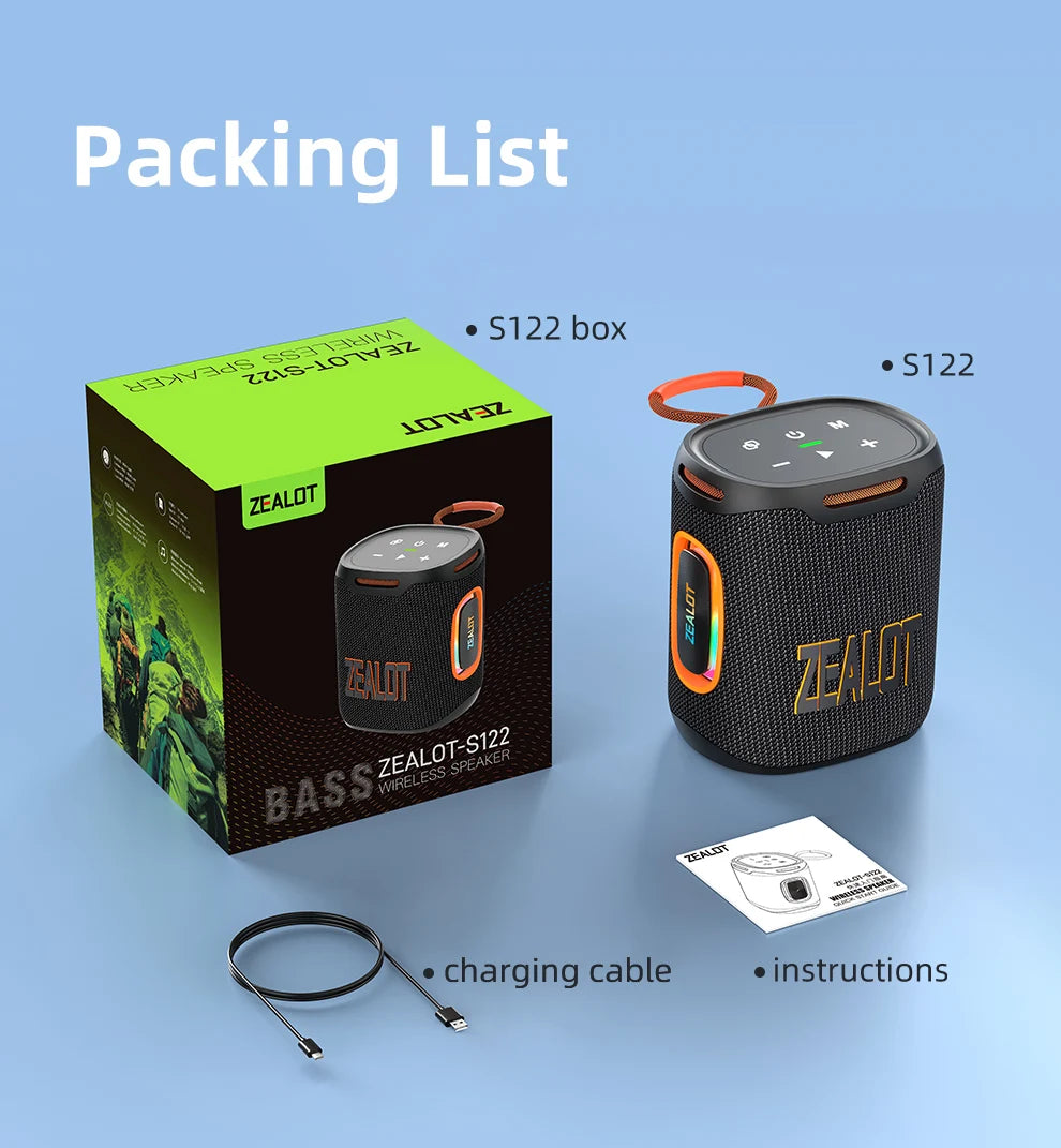 Zealot-S122 Bluetooth Speaker BT5.3 Wireless IPX6 | Waterproof Shower Speaker, 20H Music Playtime