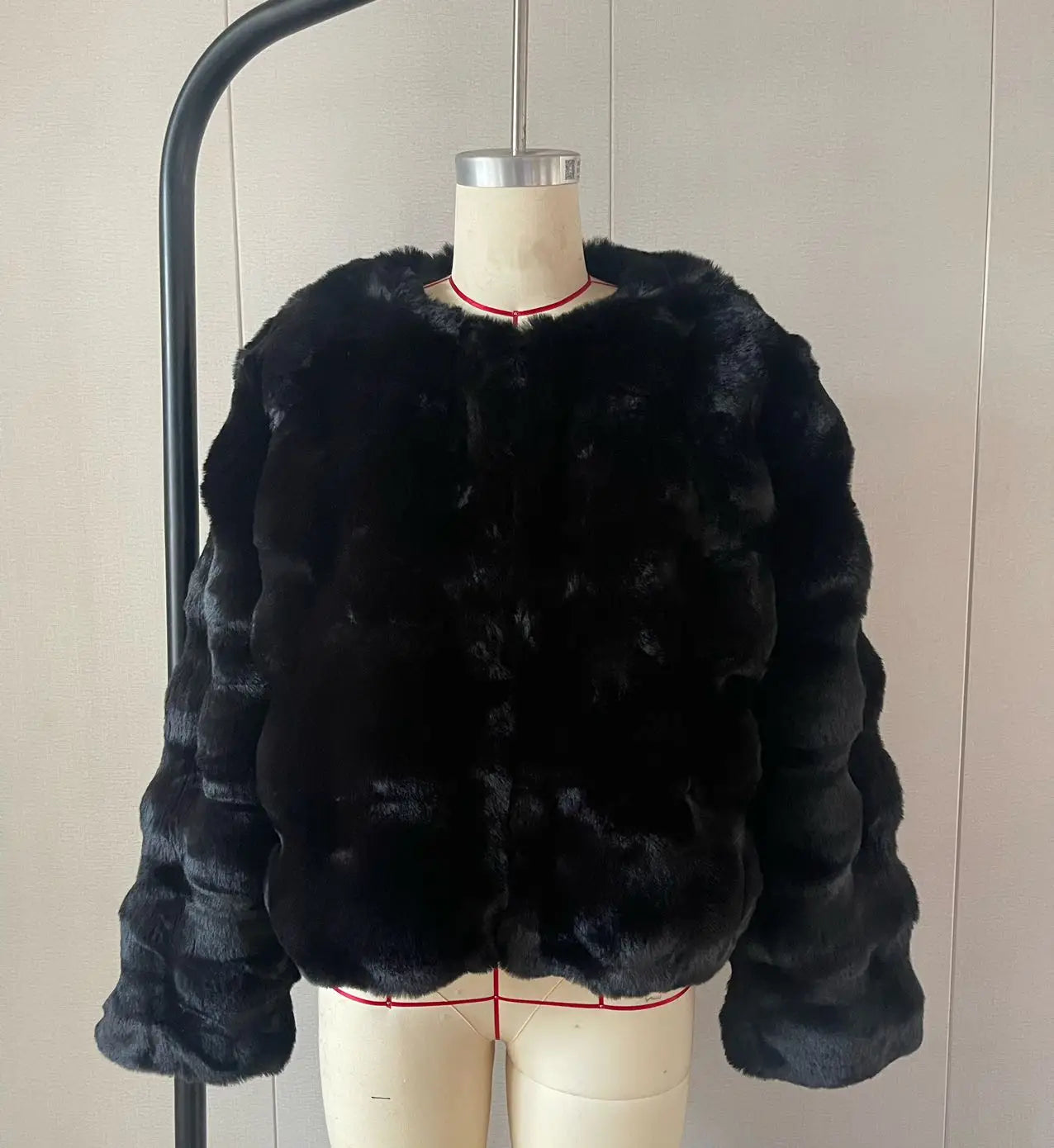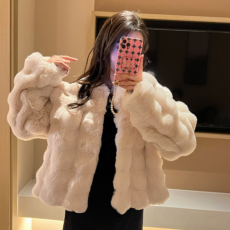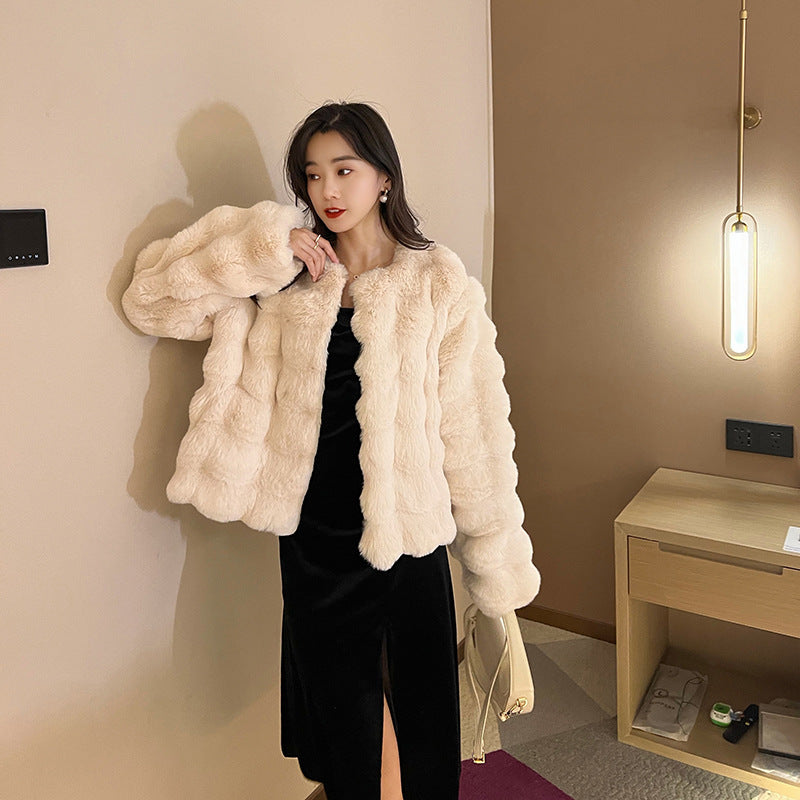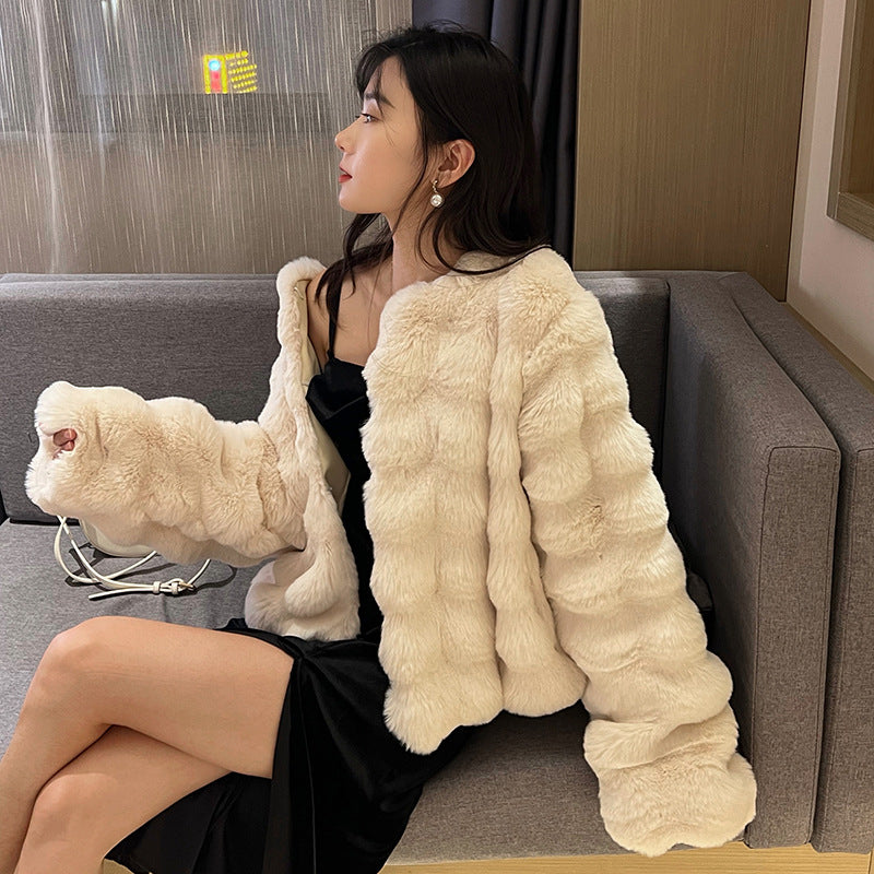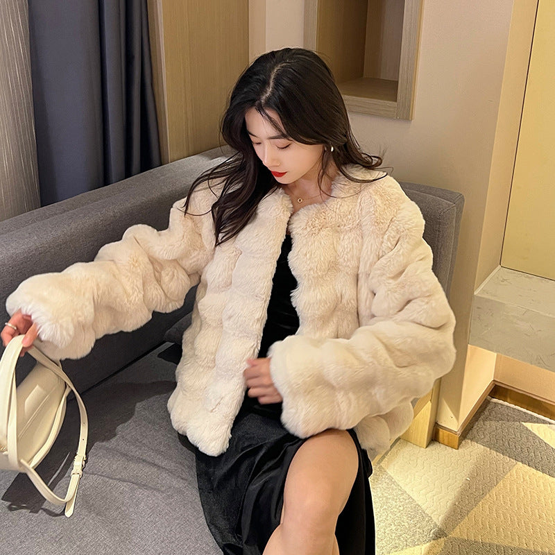 White Fur Coat for Women | New Style Short Imitation Fur Plush Collarless Top Short Top