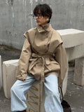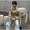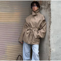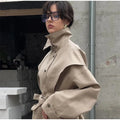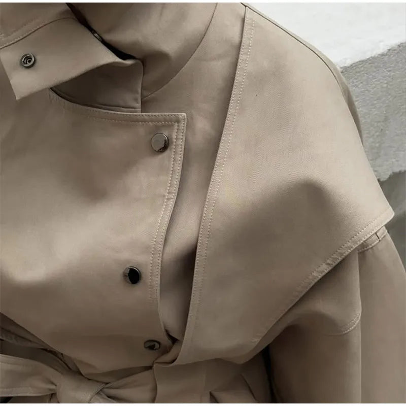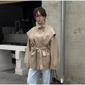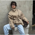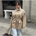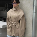 Model Number: Solid Lace Up Lapel Trench Coat For Women