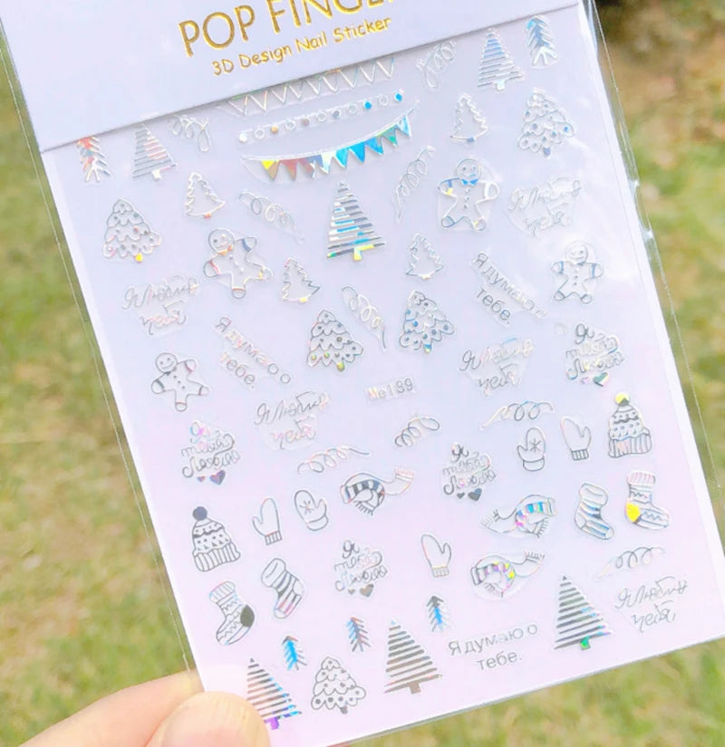 Feature: Christmas Winter White Snowflake Xmas Trees Bells,3d nail art,nail art decals,nail art stickers,nail art decorations,nail art accessories,nail art manicures