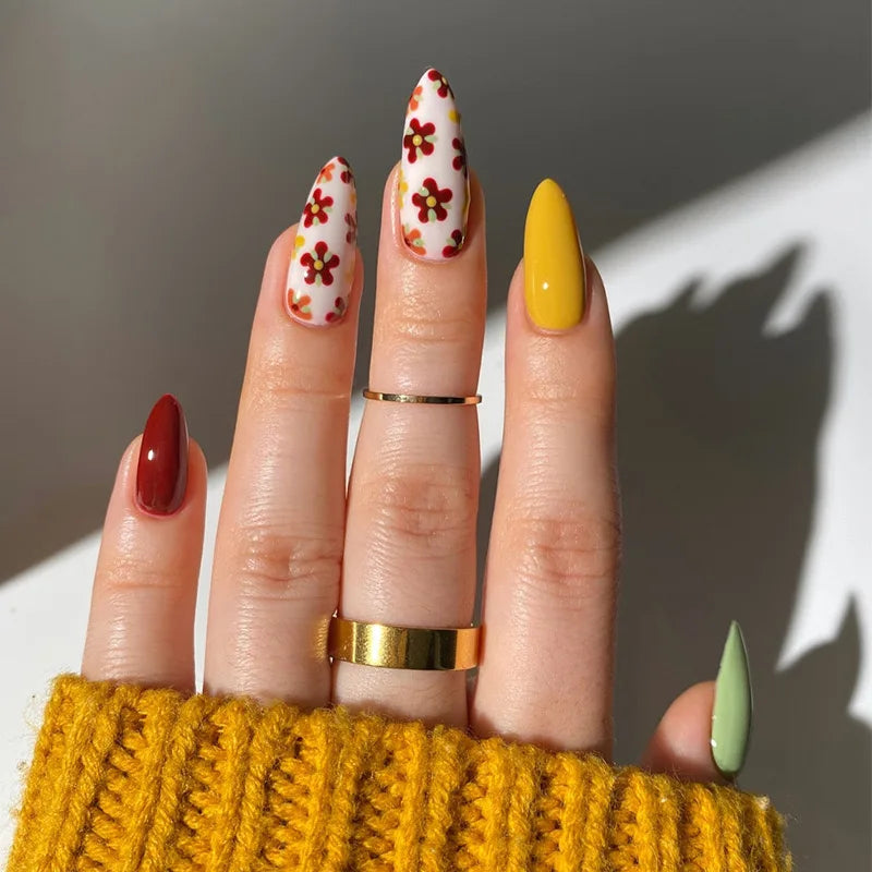 24 French Flower Almond Nails | Leopard Print Nail Tips | winter nails ideas
