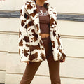Cow Print Coat Women'S Winter Plush Lapels Long Sleeve Coat